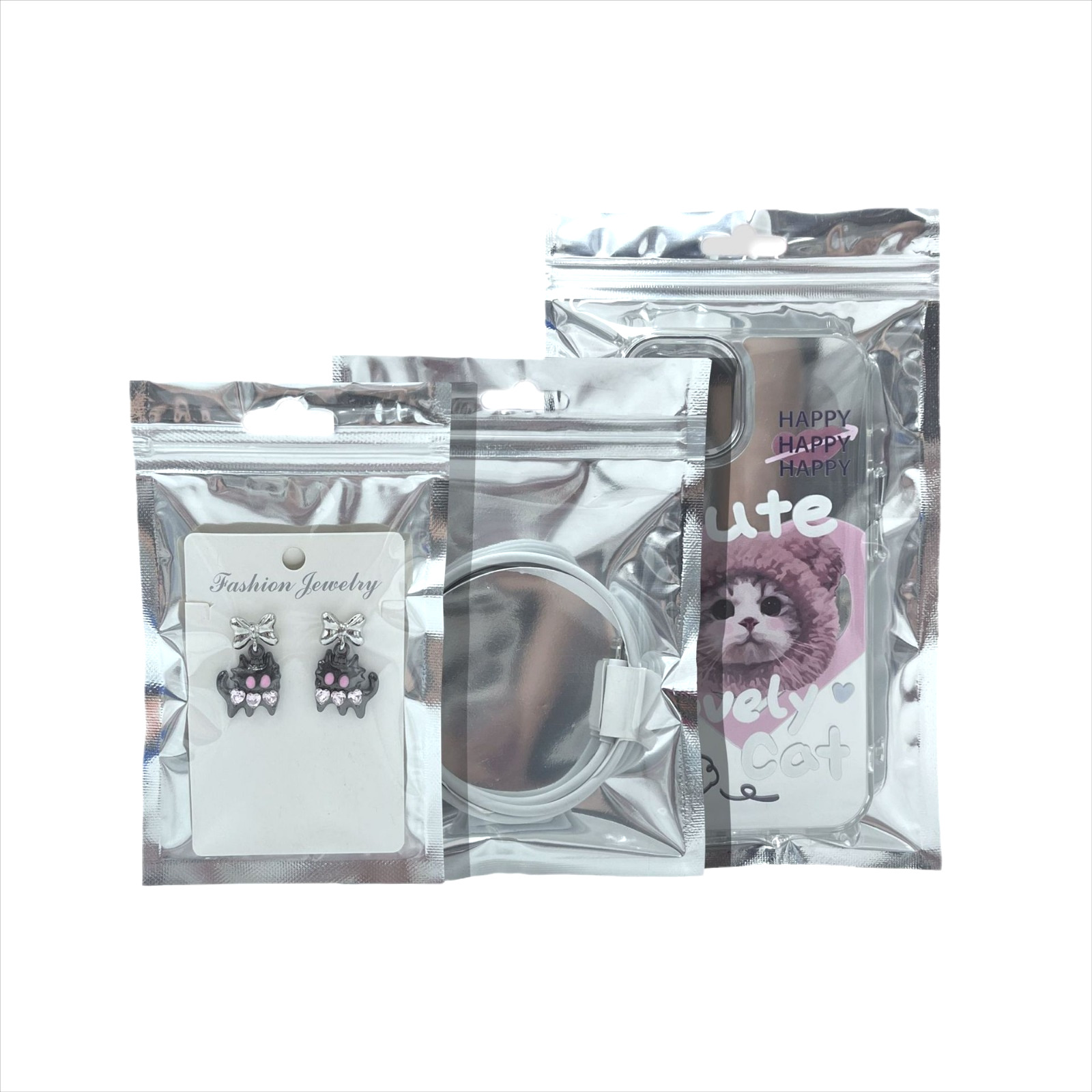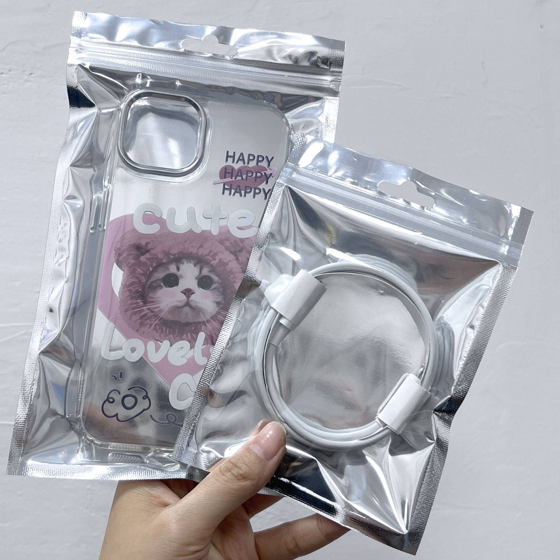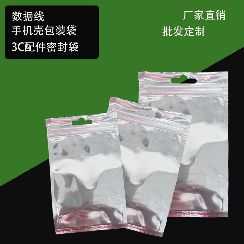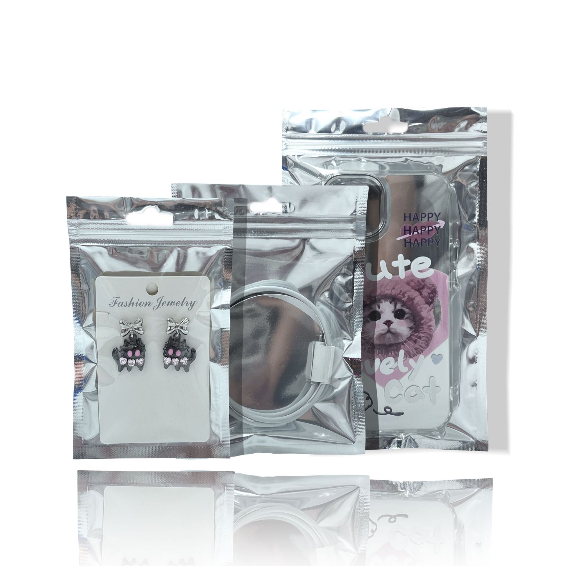 Blank Transparent Case Ziplock Bag Aluminized Mobile Phone Case Packaging Bag Small Jewelry Bag Data Cable Plastic Seal Bag Free Shipping