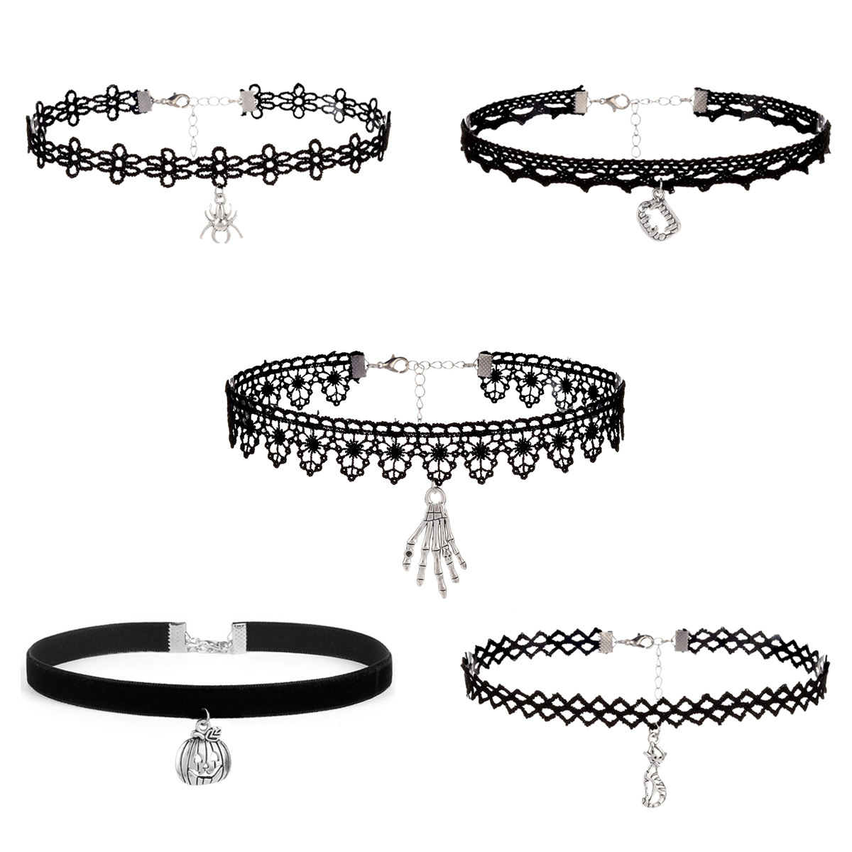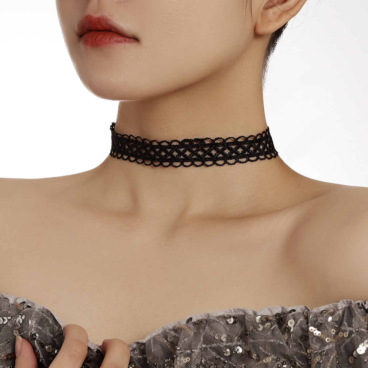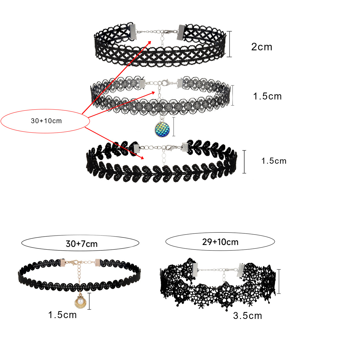 Vintage Dark Gothic Lace Choker Collar Fashion Flower Lace chocker Stretch Necklace Combination