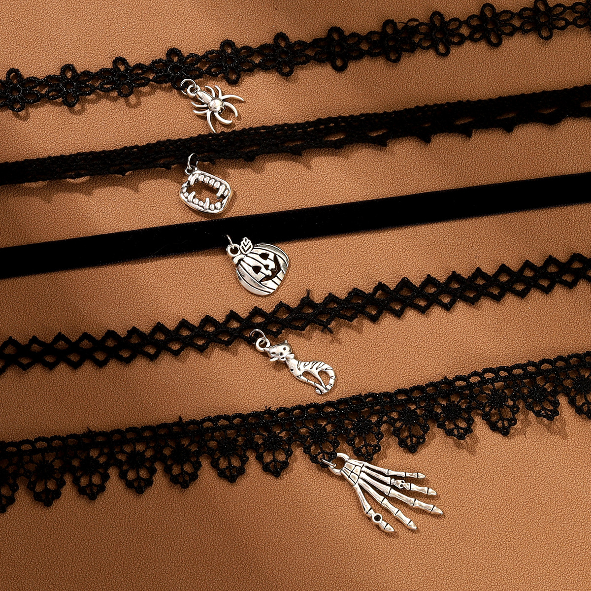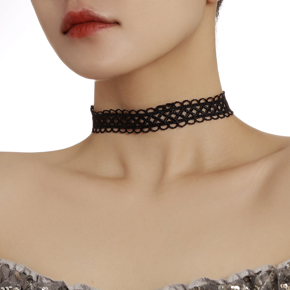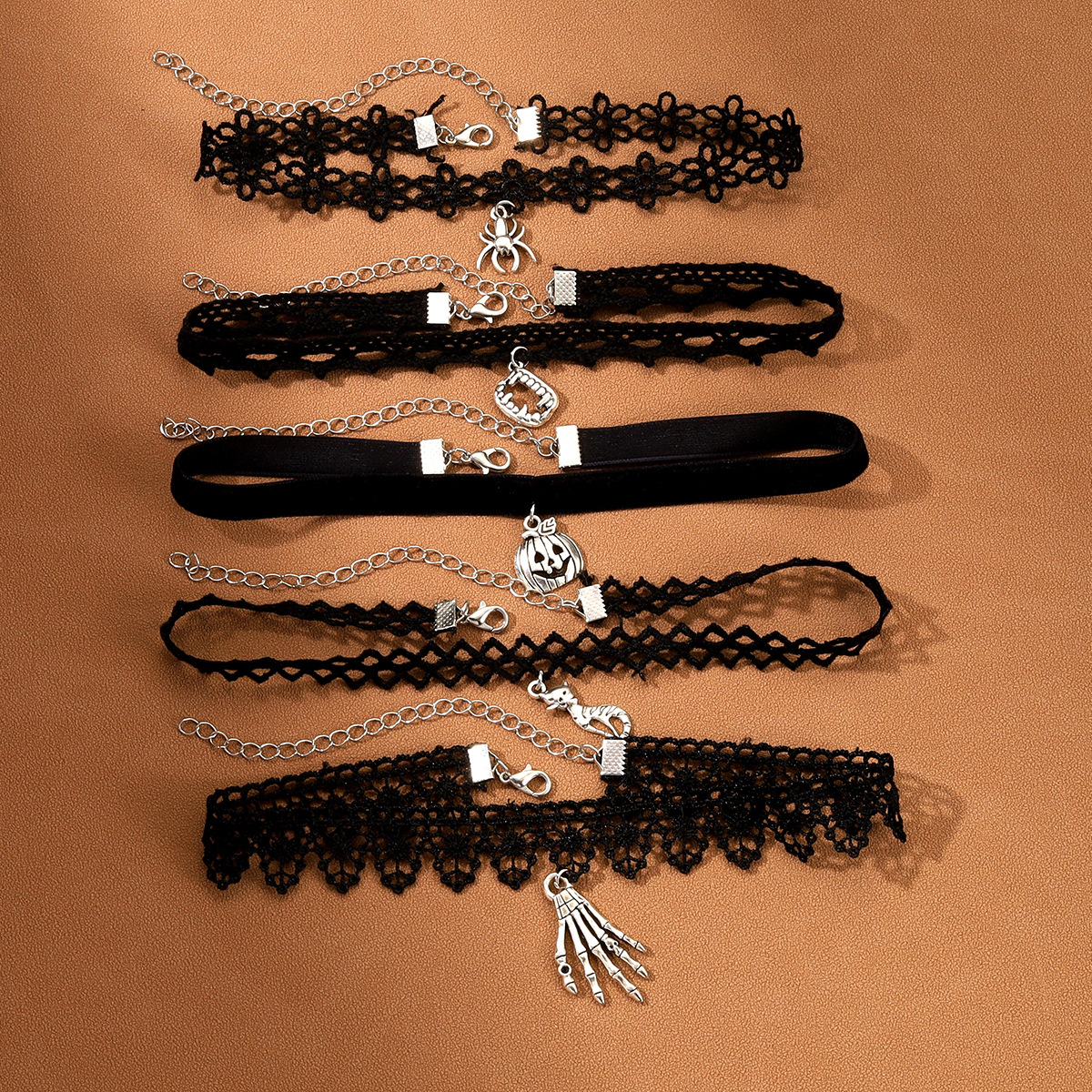 Vintage Dark Gothic Lace Choker Collar Fashion Flower Lace chocker Stretch Necklace Combination