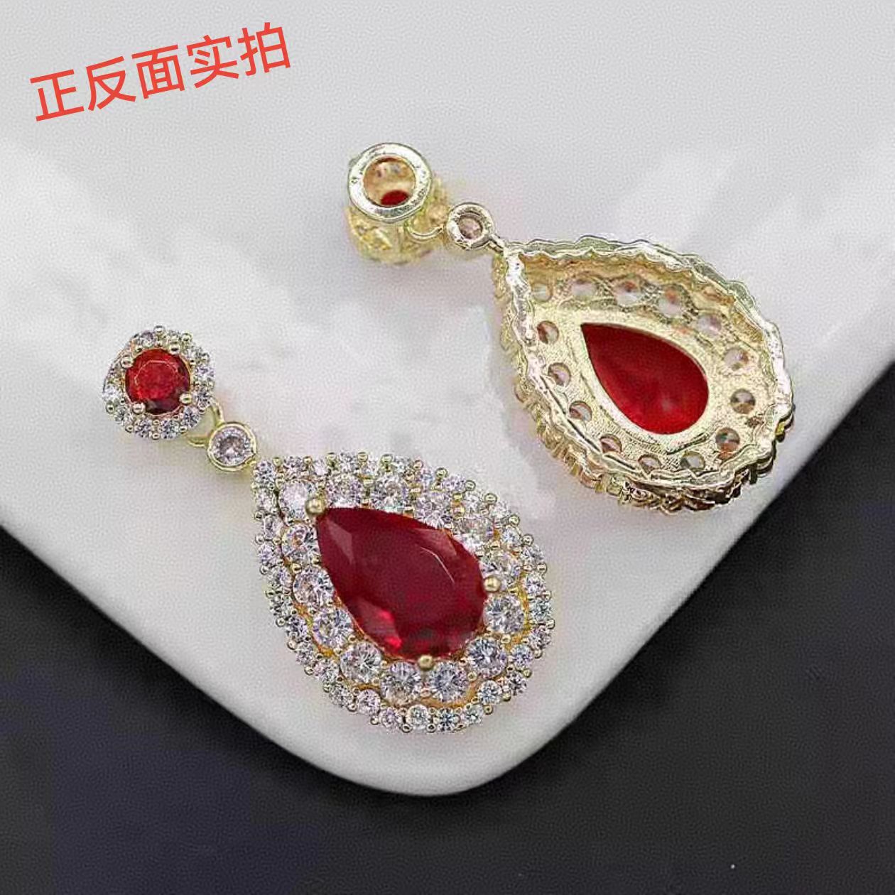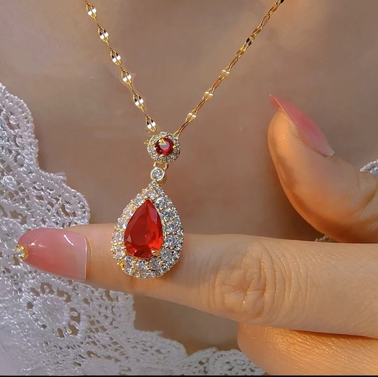 Color: Golden red zircon lip chain
