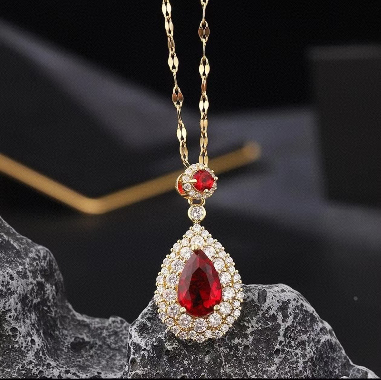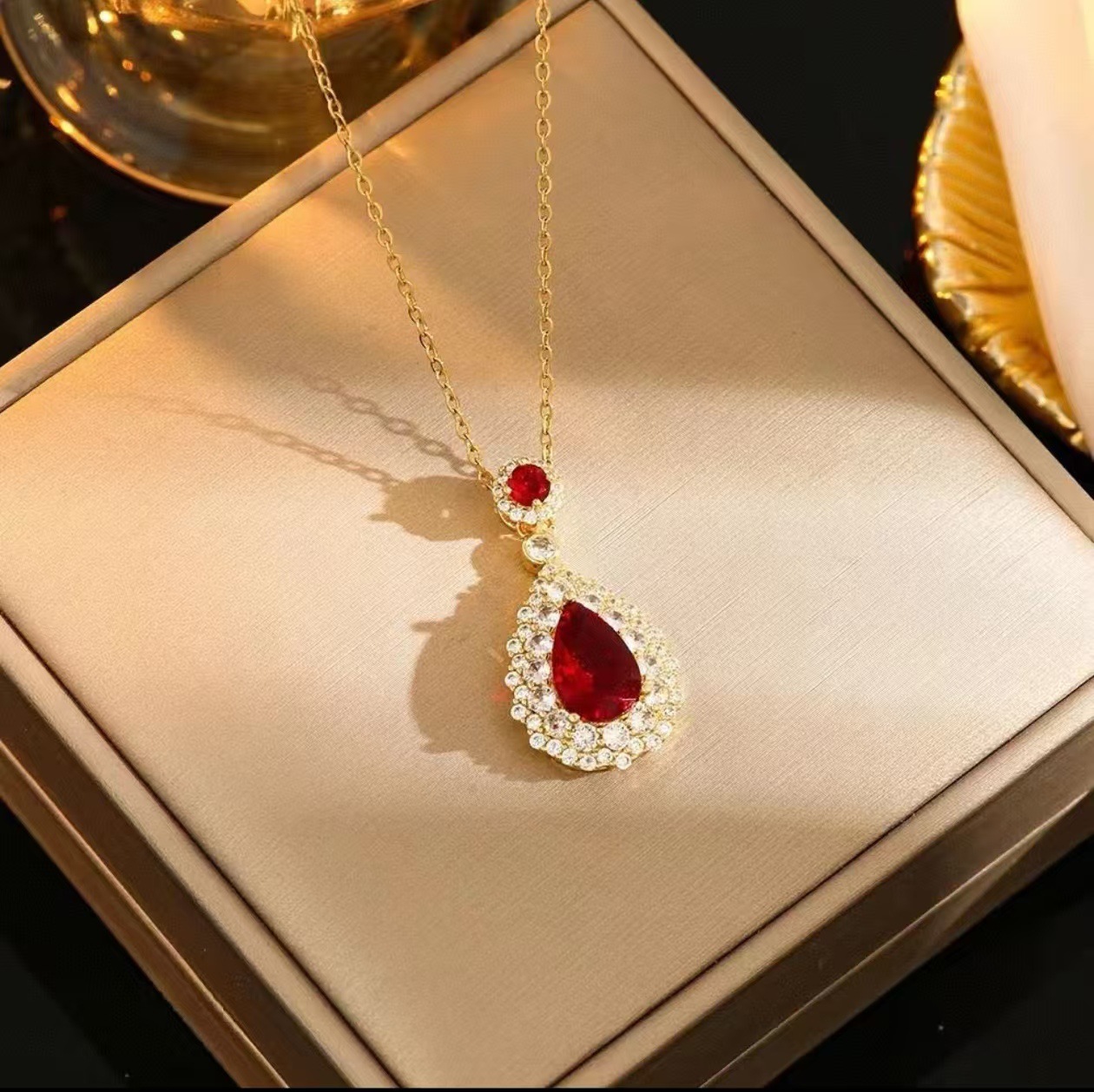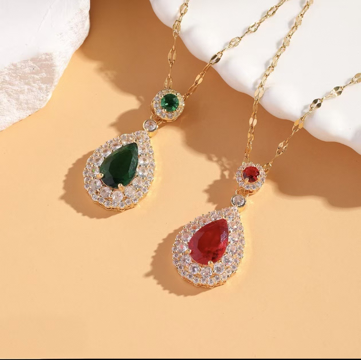 Color: Golden red zirconium cross chain