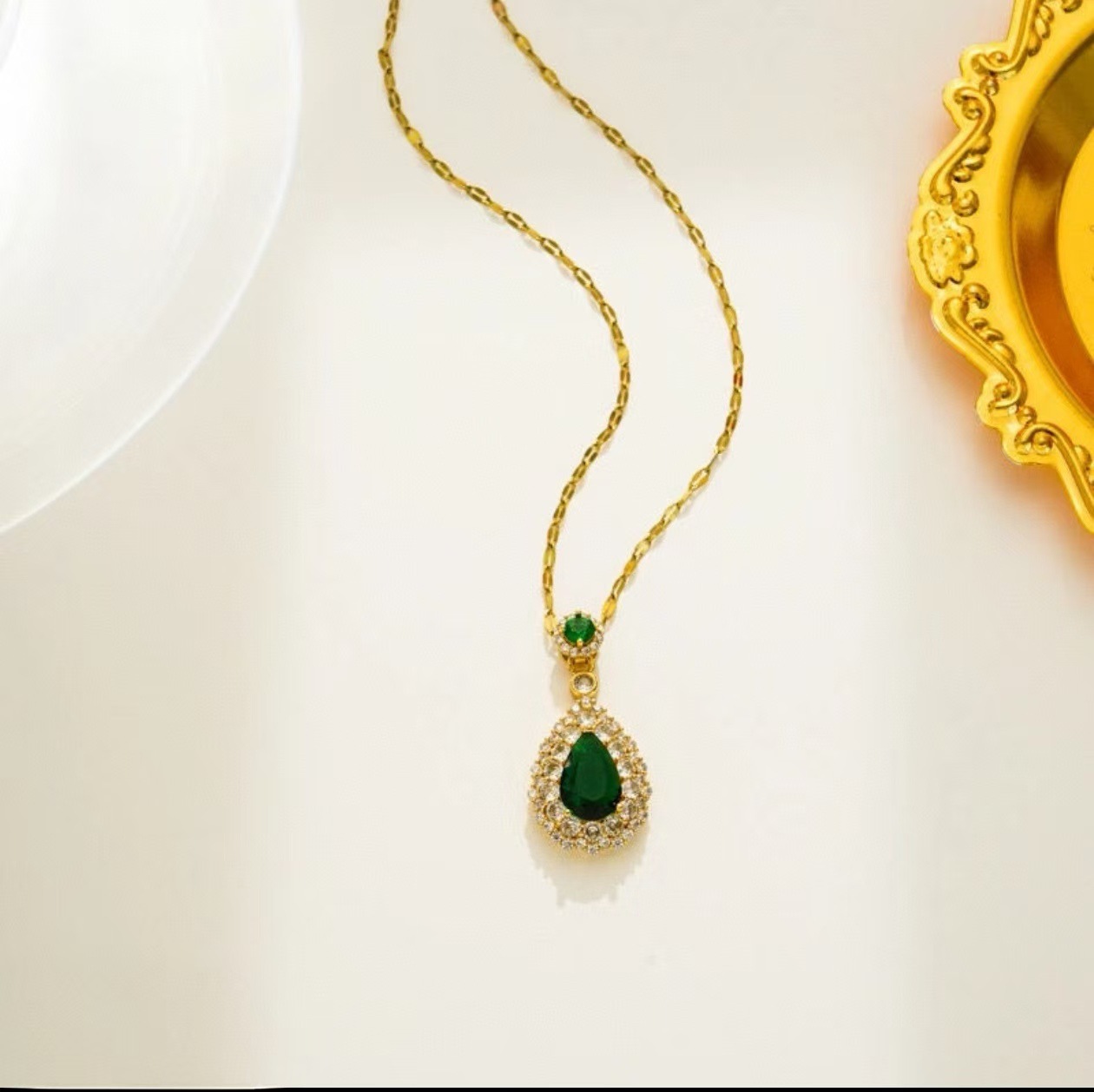 Color: Golden green zircon cross chain
