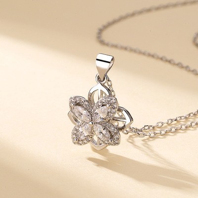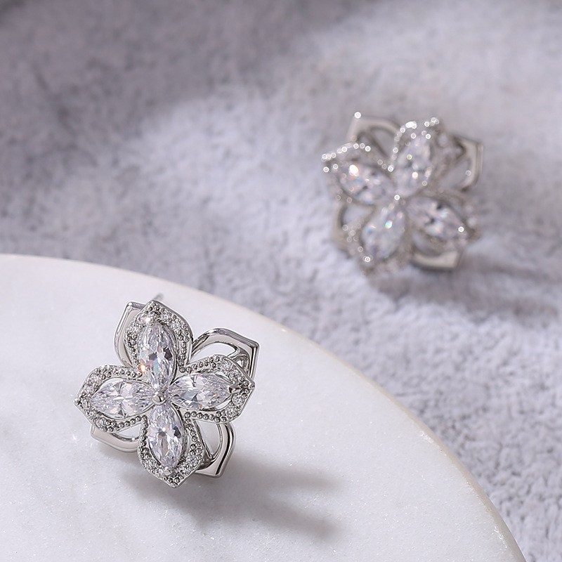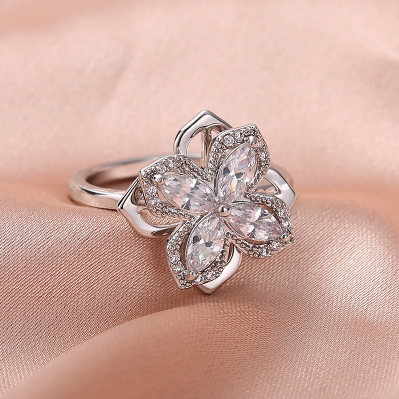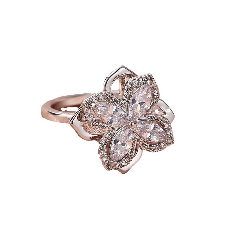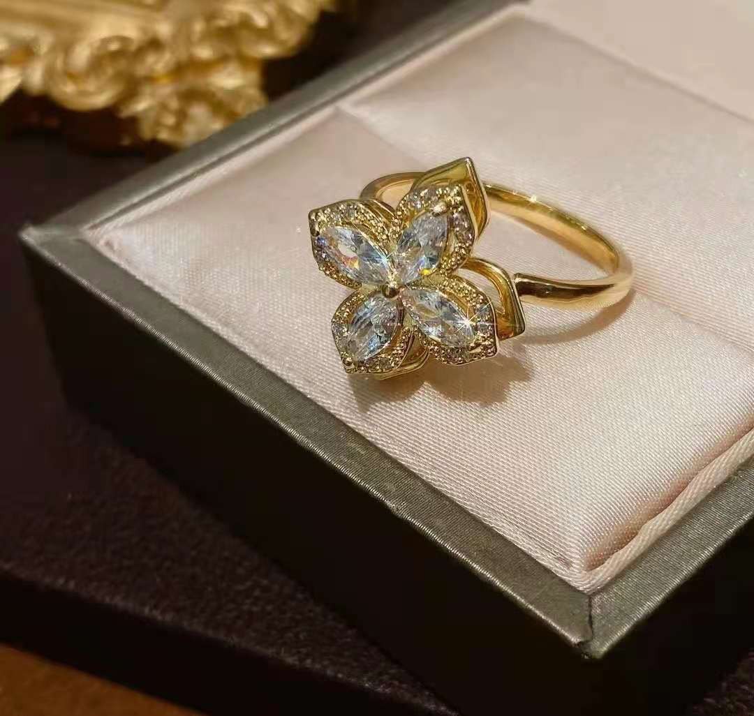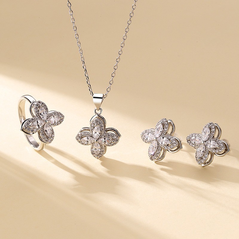 Summer High-End Rotatable Zircon Four-Leaf Clover Suit for Women, Versatile Trendy Jewelry Three-Piece Set, Jewelry Accessories Wholesale