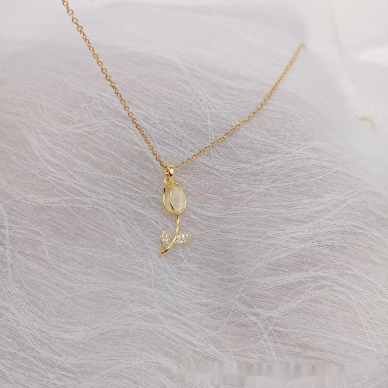 [Titanium Steel] Beautiful Tulip Light Luxury Temperament Gorgeous Diamond Necklace Women's All-match Clavicle Chain Titanium Steel Chain