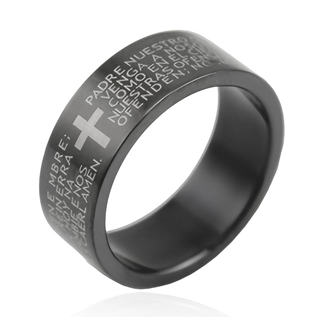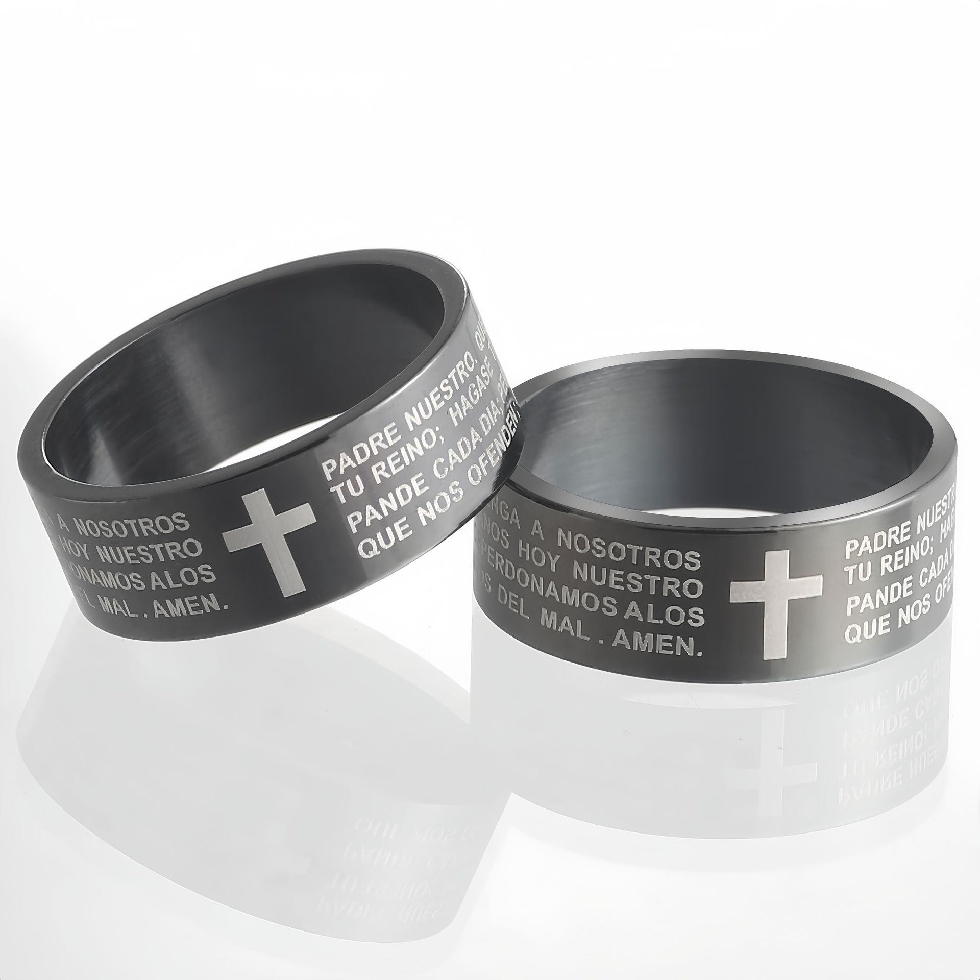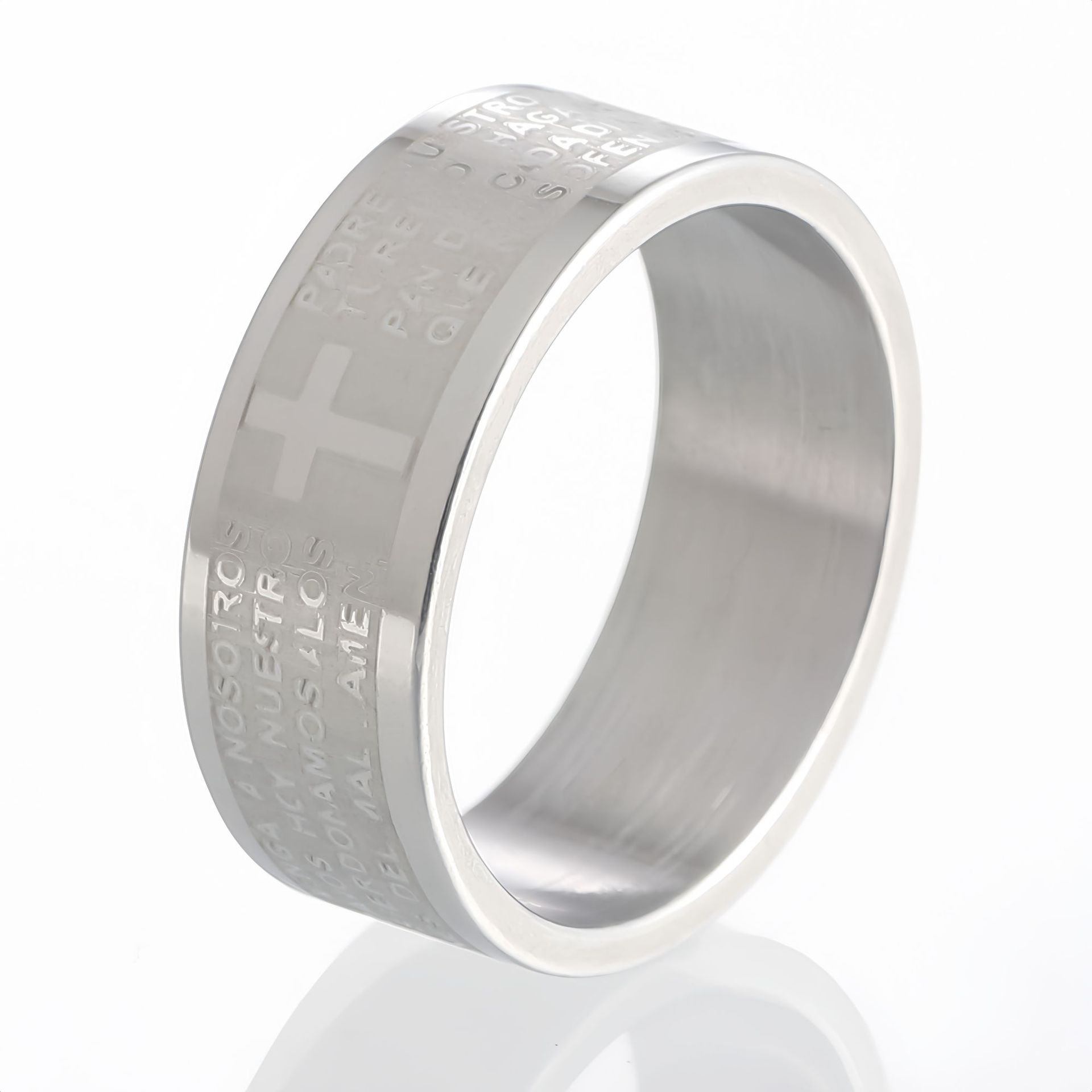 Europe and the United States cross-border stainless steel ring men's personality jewelry carving cross letter ring titanium steel jewelry wholesale