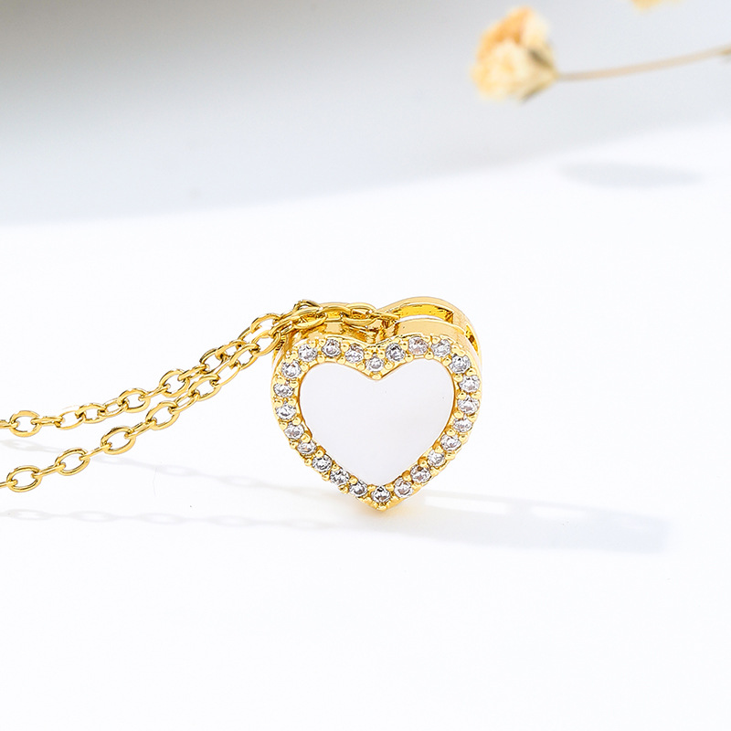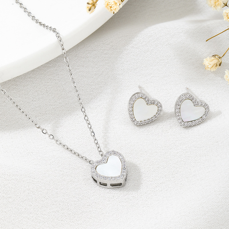 New Style Fragrant Style Fritillaria Love Earrings Necklace Set Stainless Steel Jewelry Inlaid with Zircon Charm Style