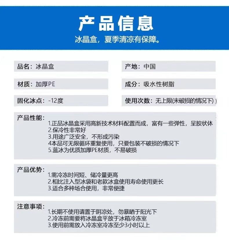 Specification: Rectangular ice crystal box (500ml) [blue cover]