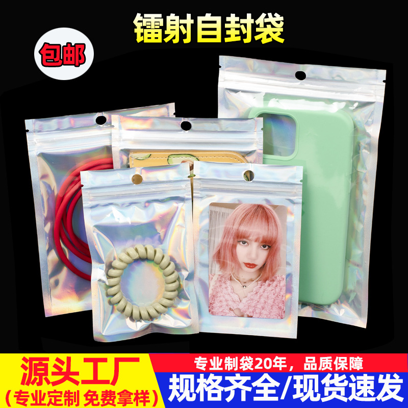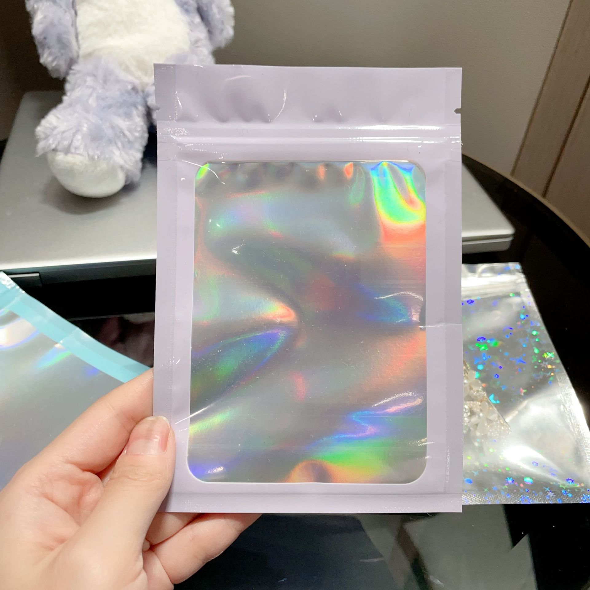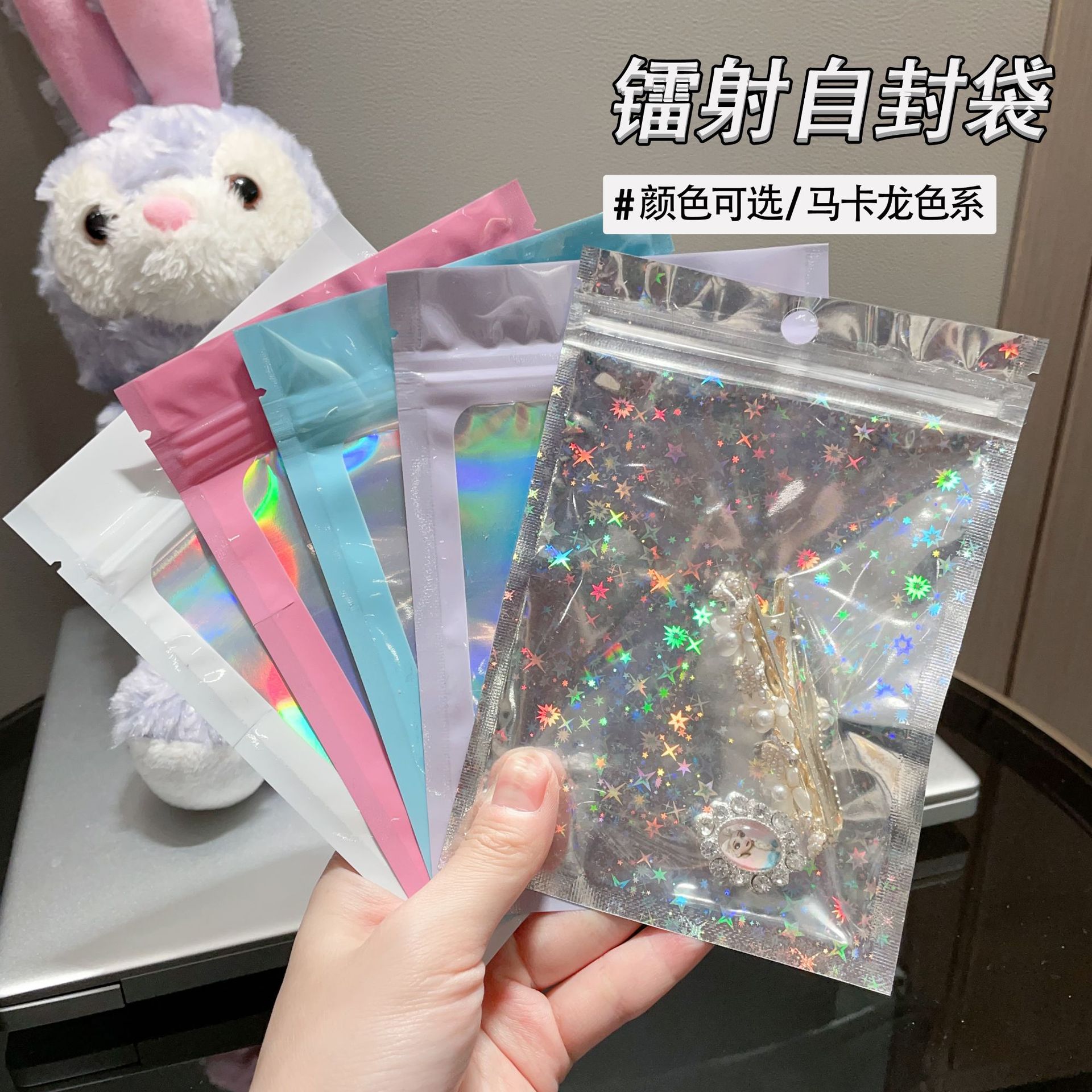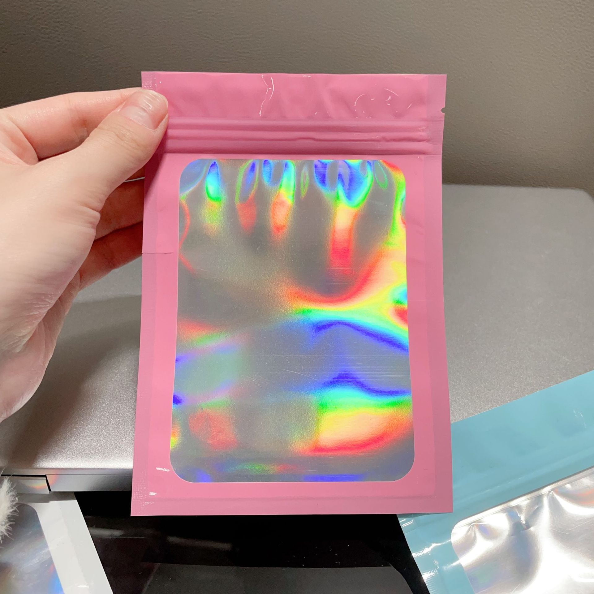 Laser color pink self-sealing bag jewelry cosmetic packaging bag magic color aluminum foil plastic jewelry sealed bag nail art