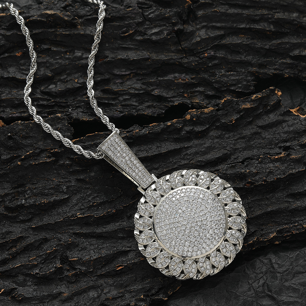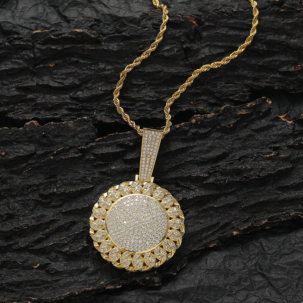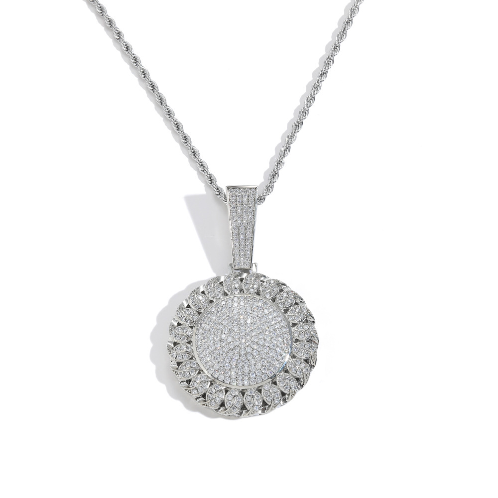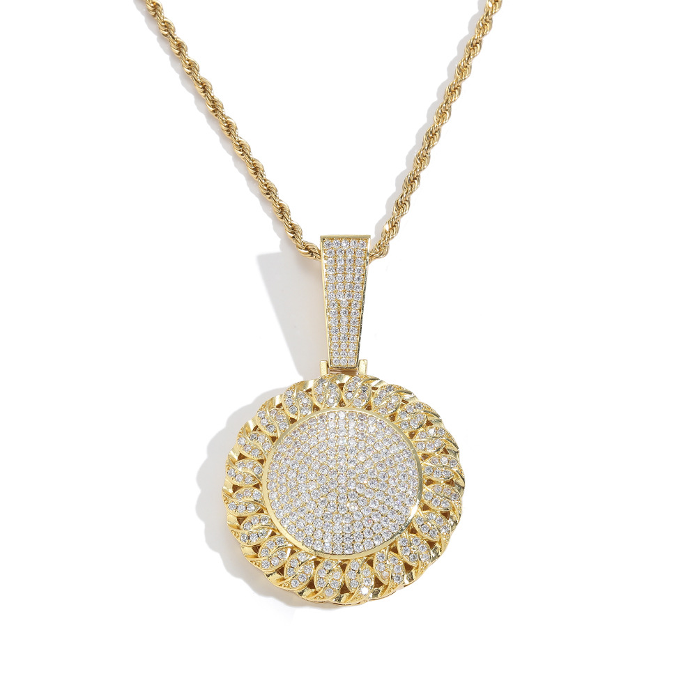 大尺寸圆形古巴花纹吊坠 铜镶锆石
