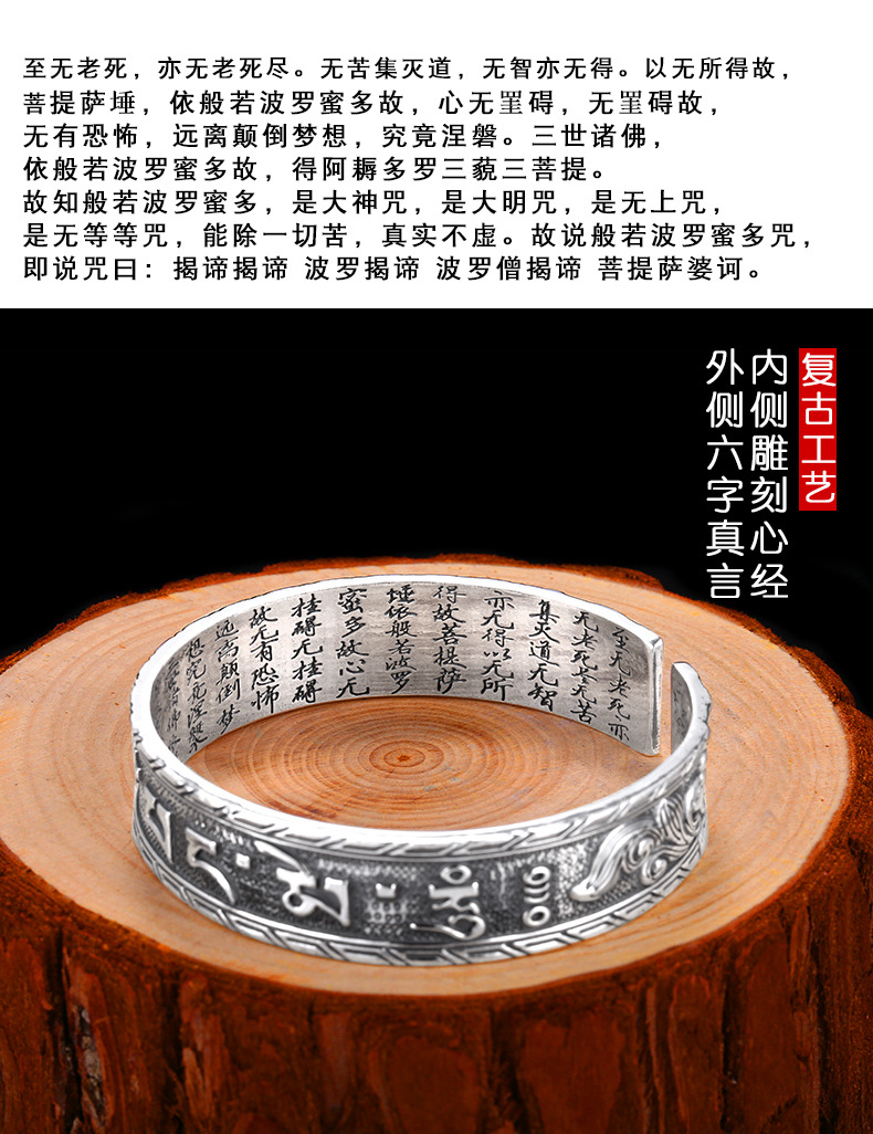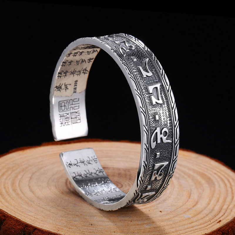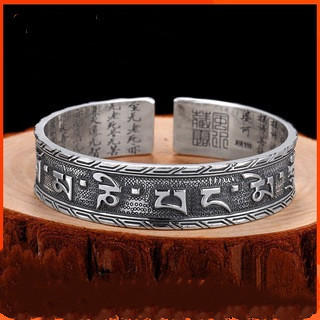 Vintage Distressed Thai Silver Bracelet Personalized Six-character Mantra Women's Solid Engraving Wide Men's Heart-sutra Bracelet Chinese-style