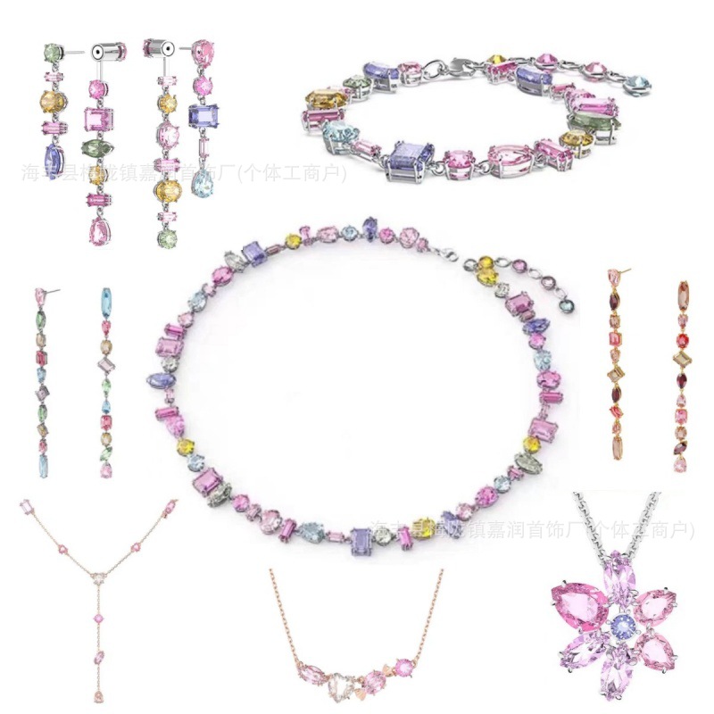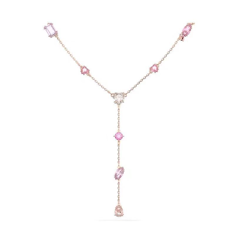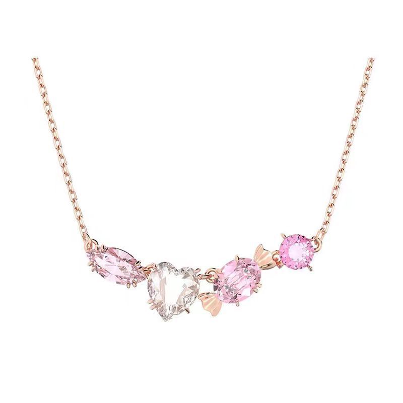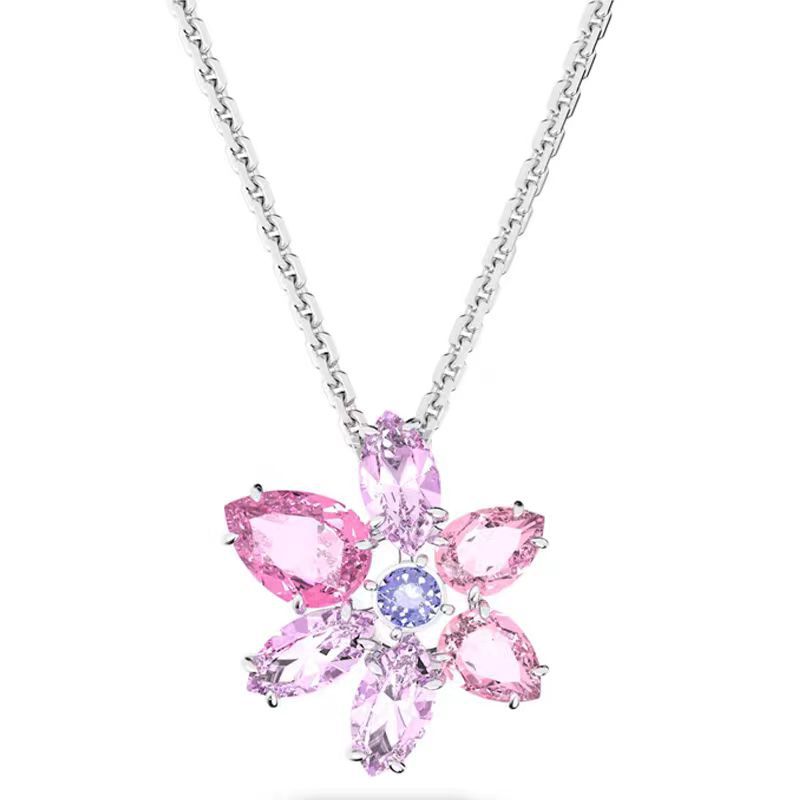 Color: Pink flower crystal necklace