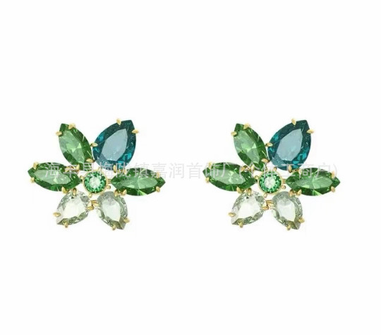 Color: Green crystal flower earrings