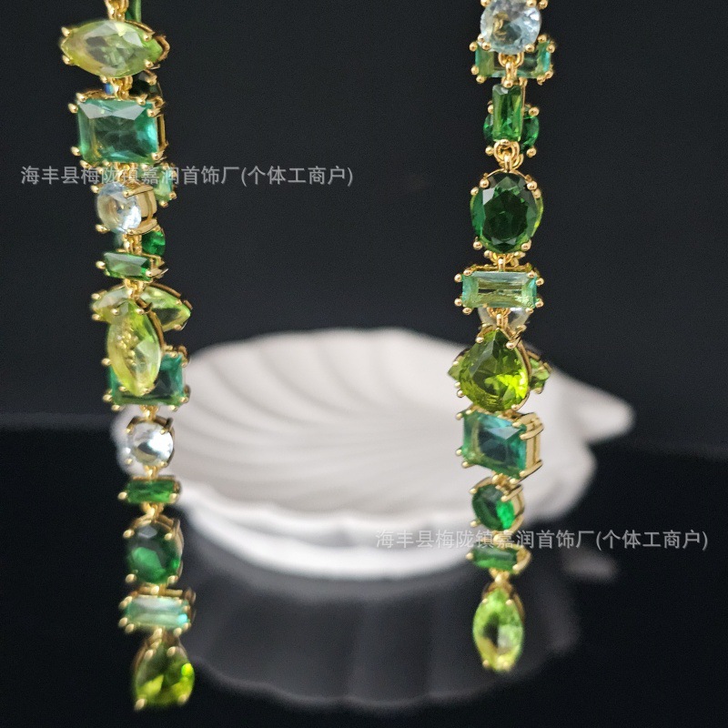 Color: Green crystal dazzling earrings
