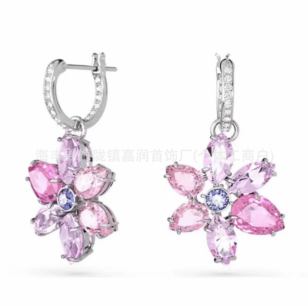Color: Pink flower crystal earrings