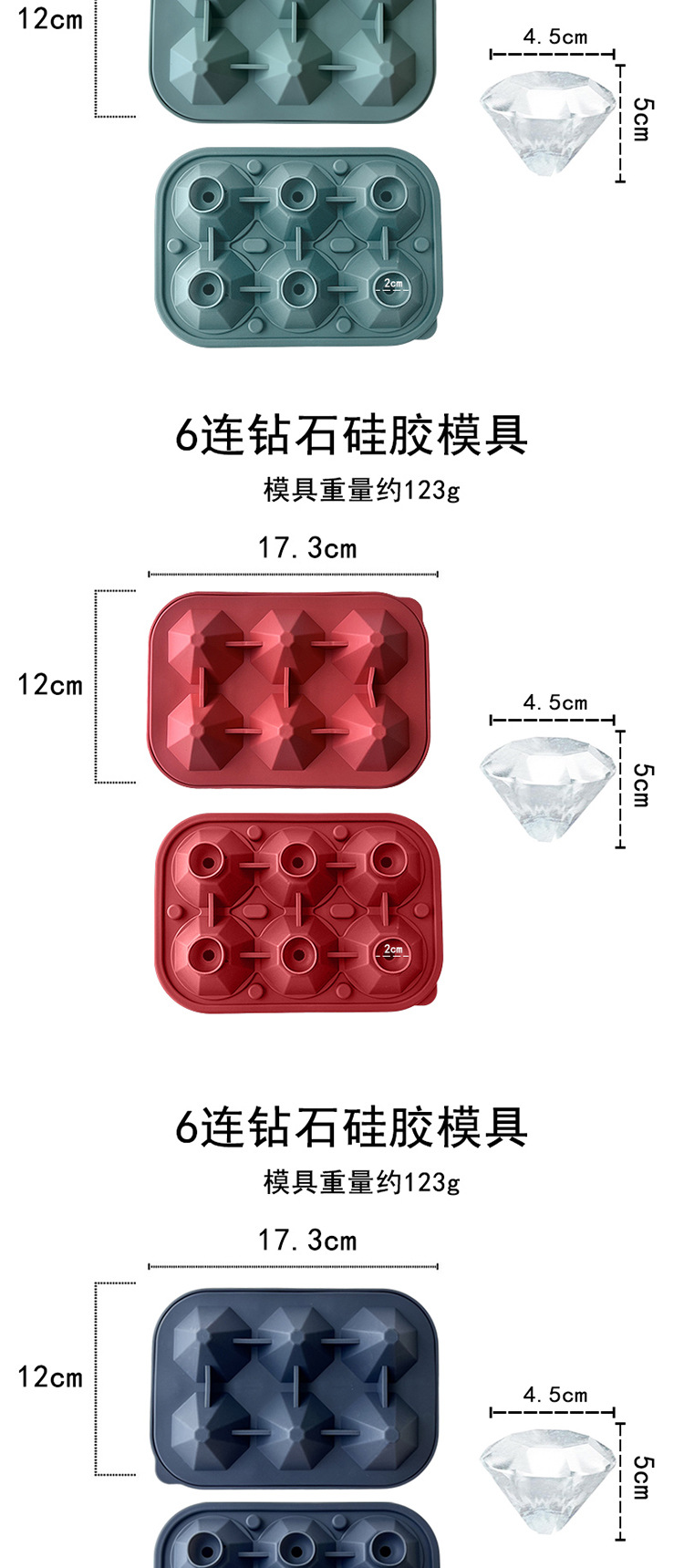 6 even diamond ice mold homemade ice large filling port without tools easy demoulding quick-frozen ice box foreign trade