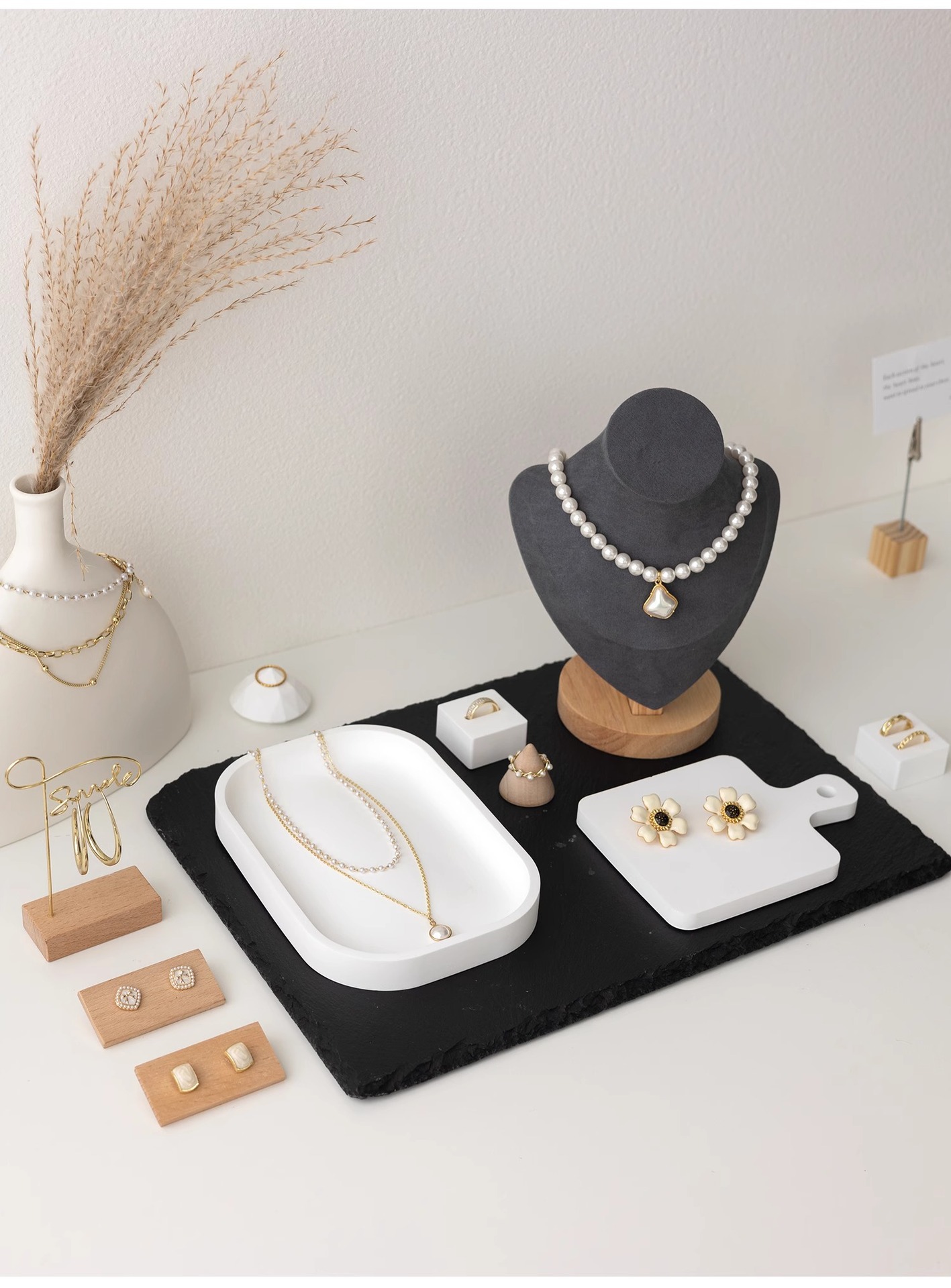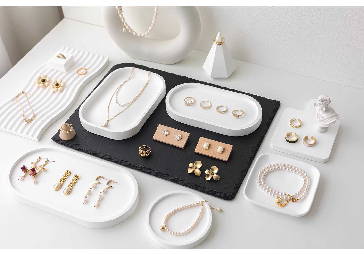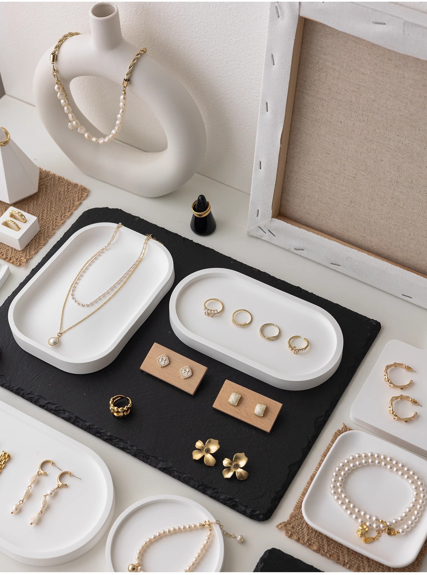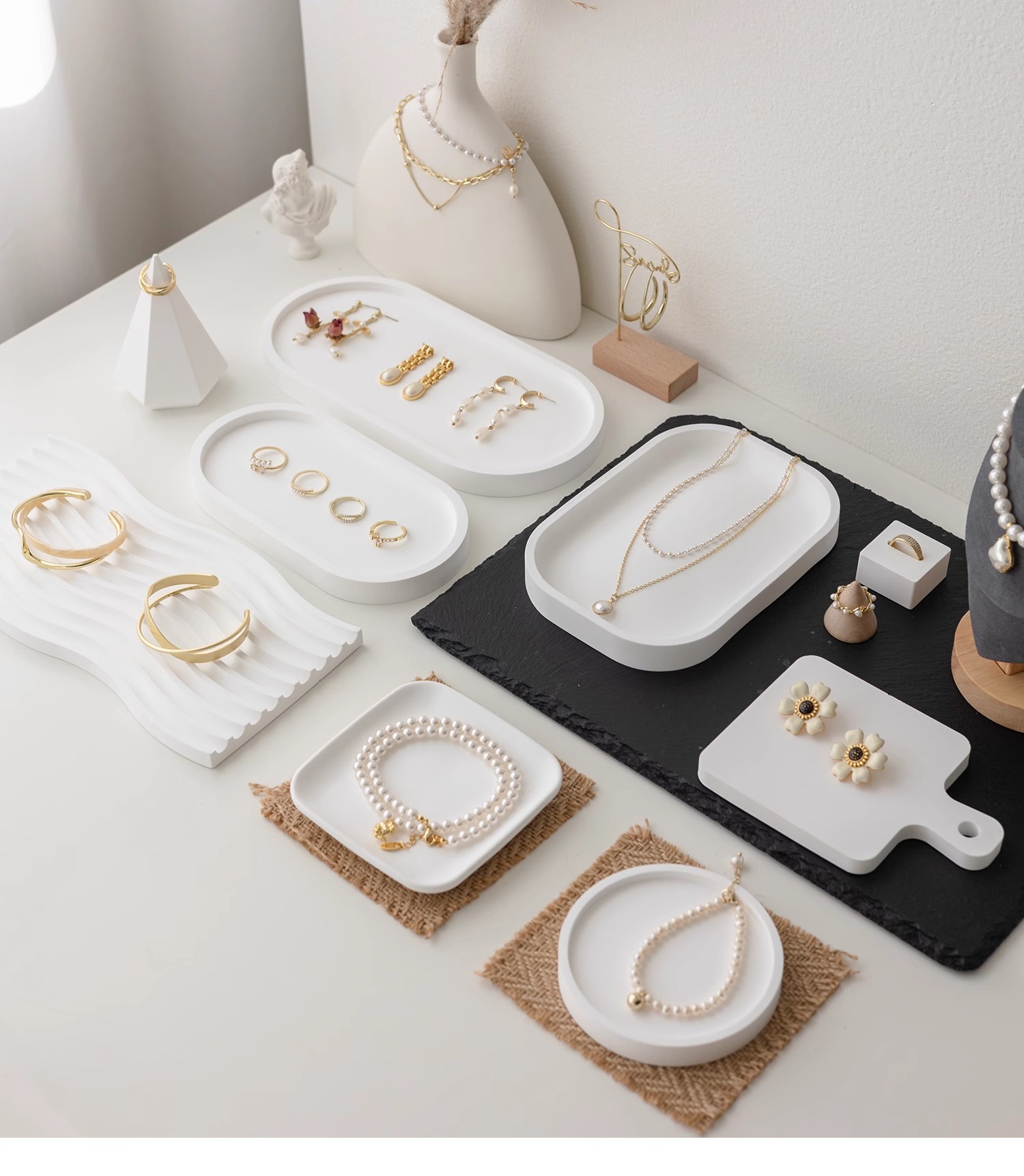 Simple jewelry tray white gypsum jewelry display tray jewelry store display photo props atmosphere decoration