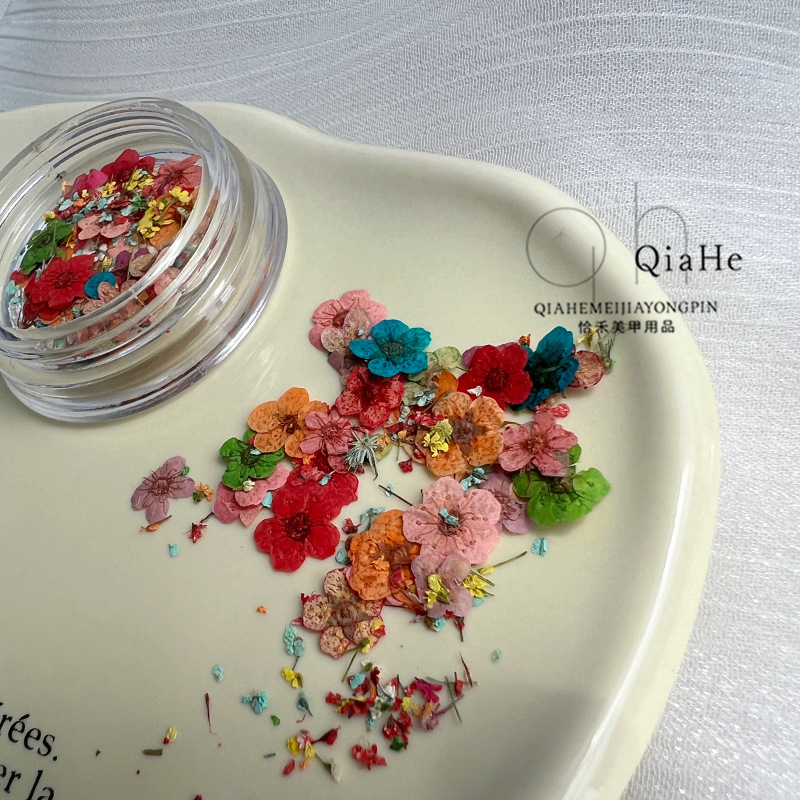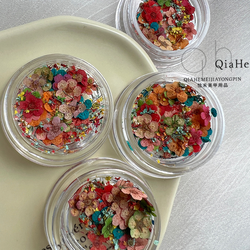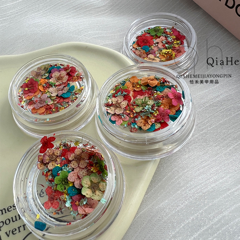 Japanese Internet Celebrity Dried Flower Nail Art Jewelry Small Daisy Five-petal Flower Embossed Real Flower Mixed Color Small Narcissus Nail Decoration