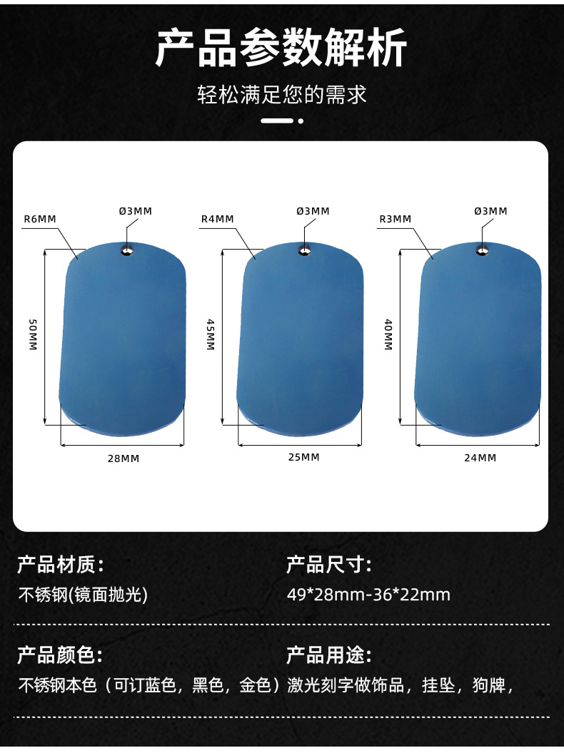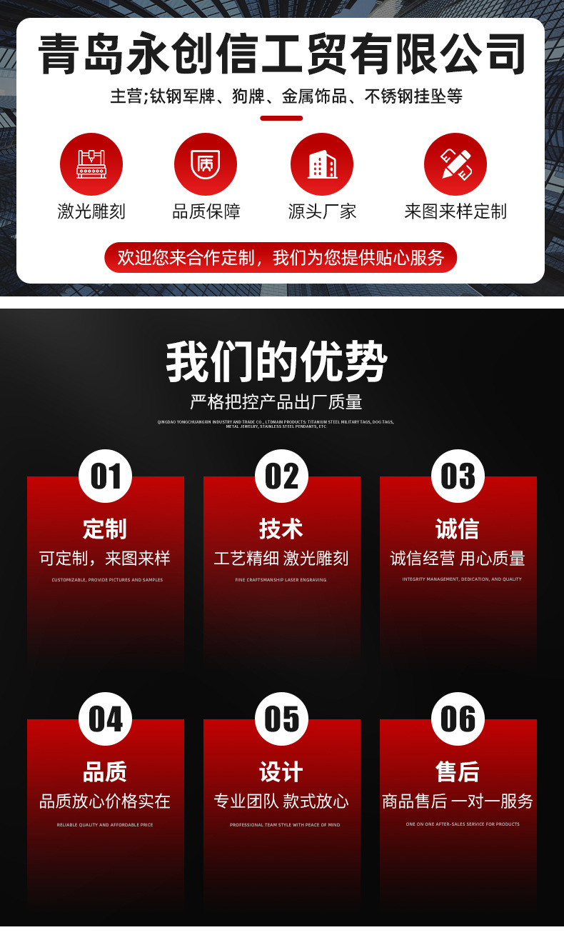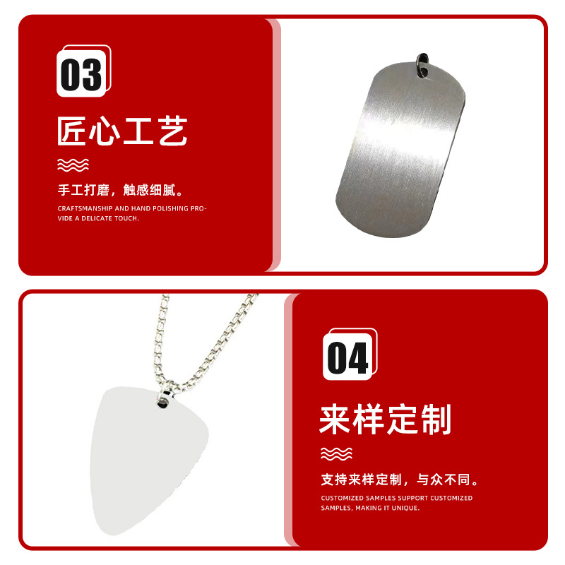 Mirror Stainless Steel Military Brand Fashionable Men's Necklace Pendant Military Brand Laser Engraving Titanium Steel Keychain Military Brand