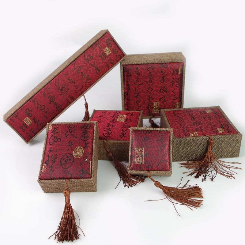 Ancient poetry jewelry box linen tassel beads 2.0 handstring box jade bracelet pendant pendant packaging box
