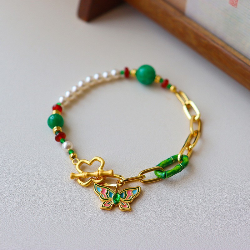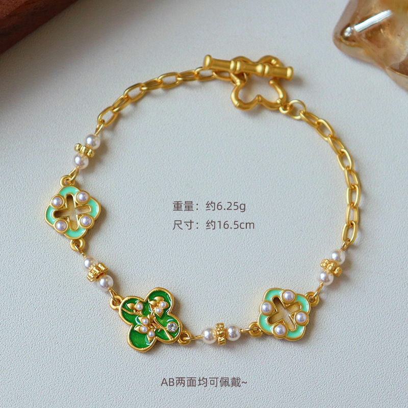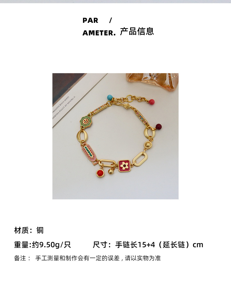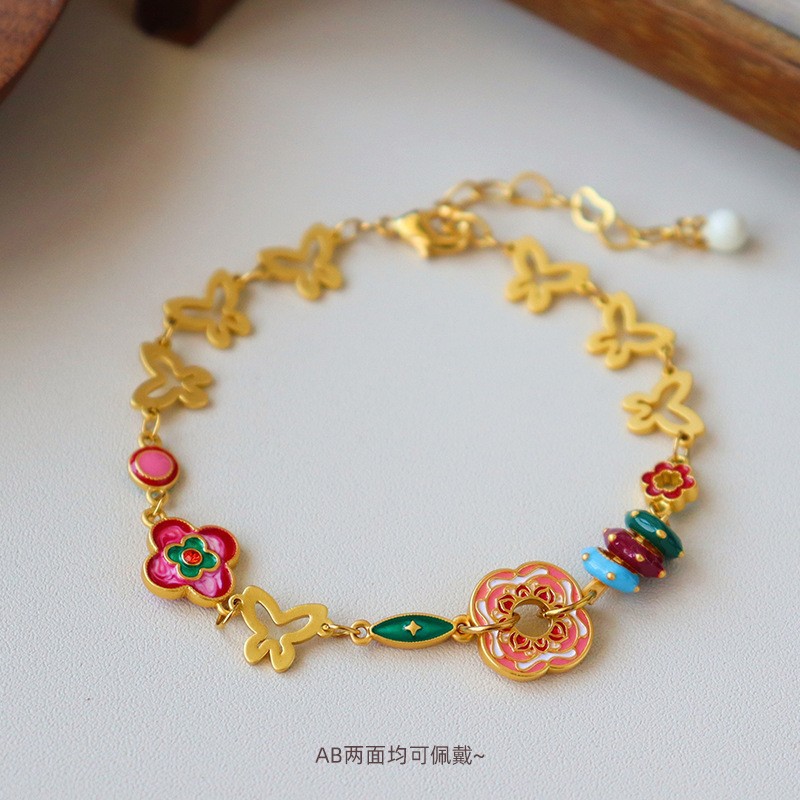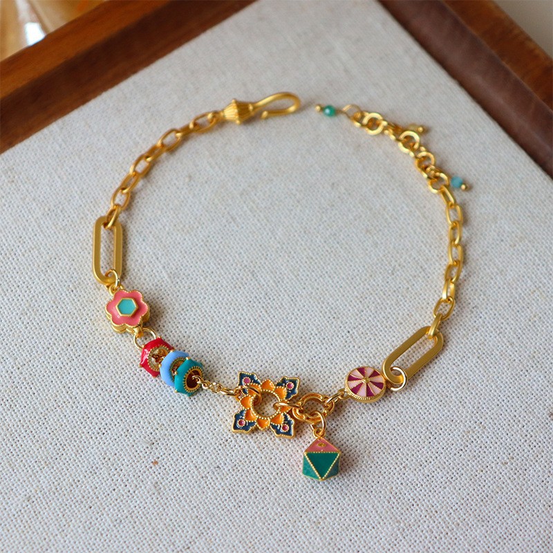 Original New Chinese Style Vintage Color Oil Drop Dopamine Flower Handmade Bracelet Women's All-match High-end Fashion Bracelet