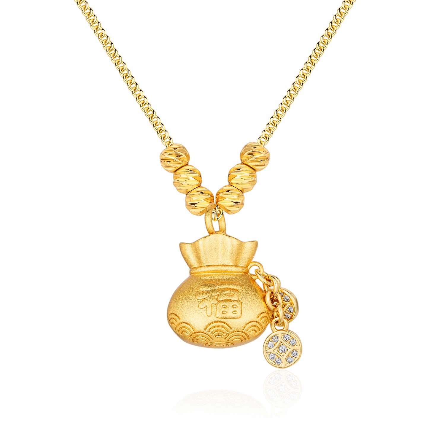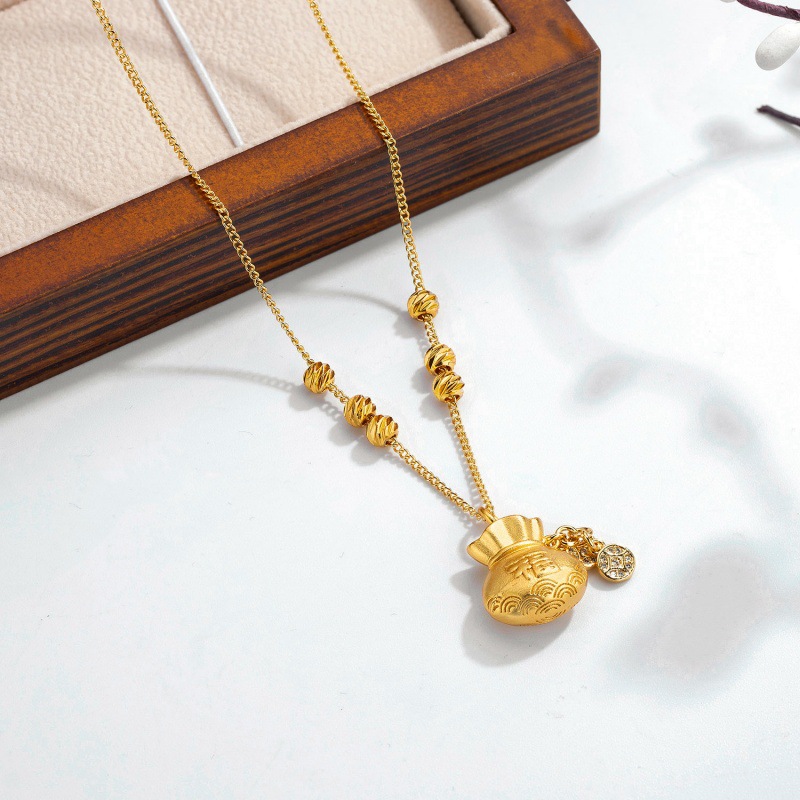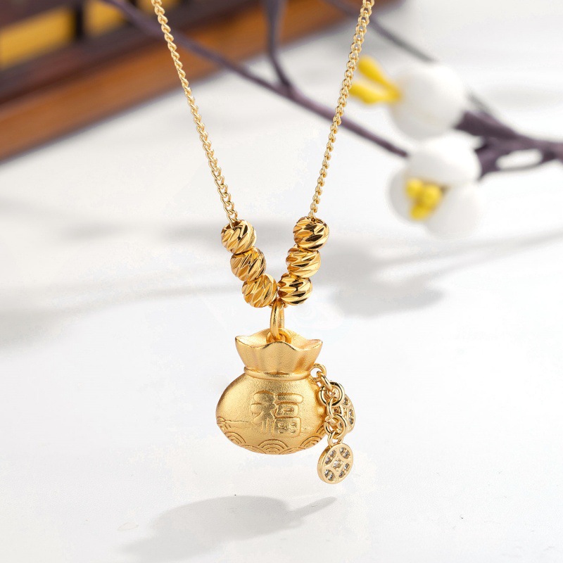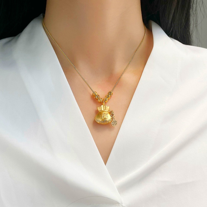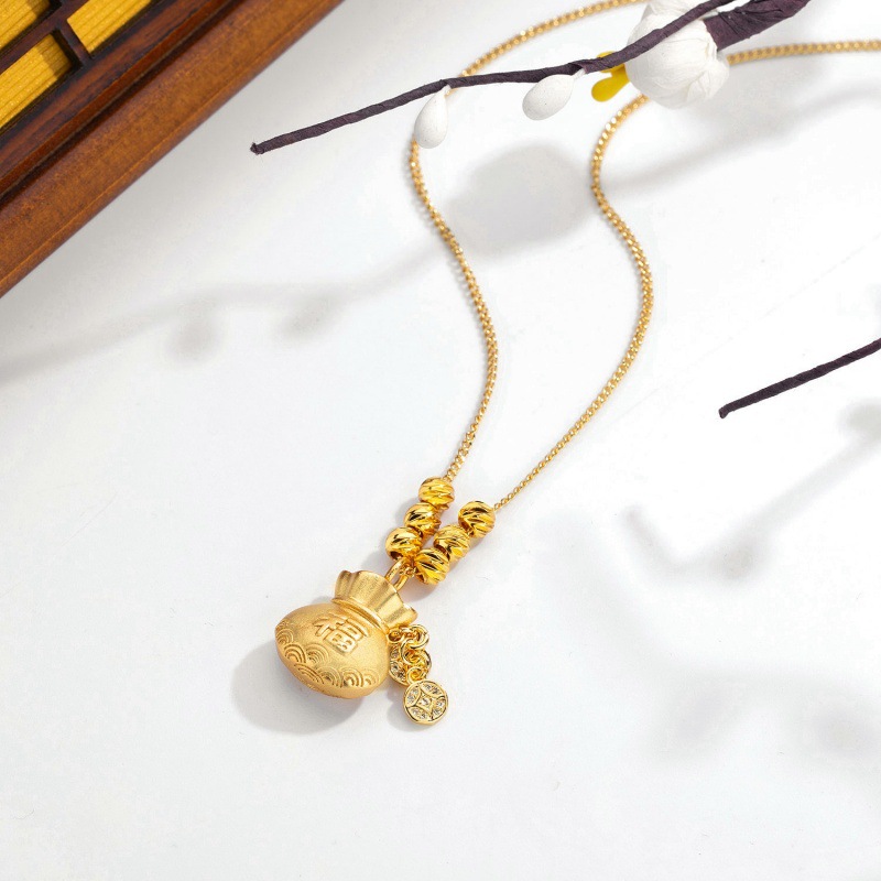 Treasure Lucky Bag Pendant Necklace 2024 New Fashion Niche Design Micro-Inlaid Zirconia Fortune-Attracting Clavicle Chain