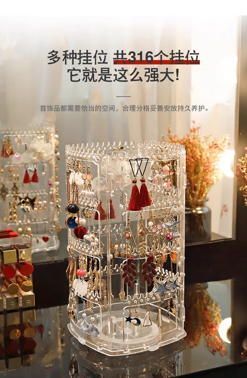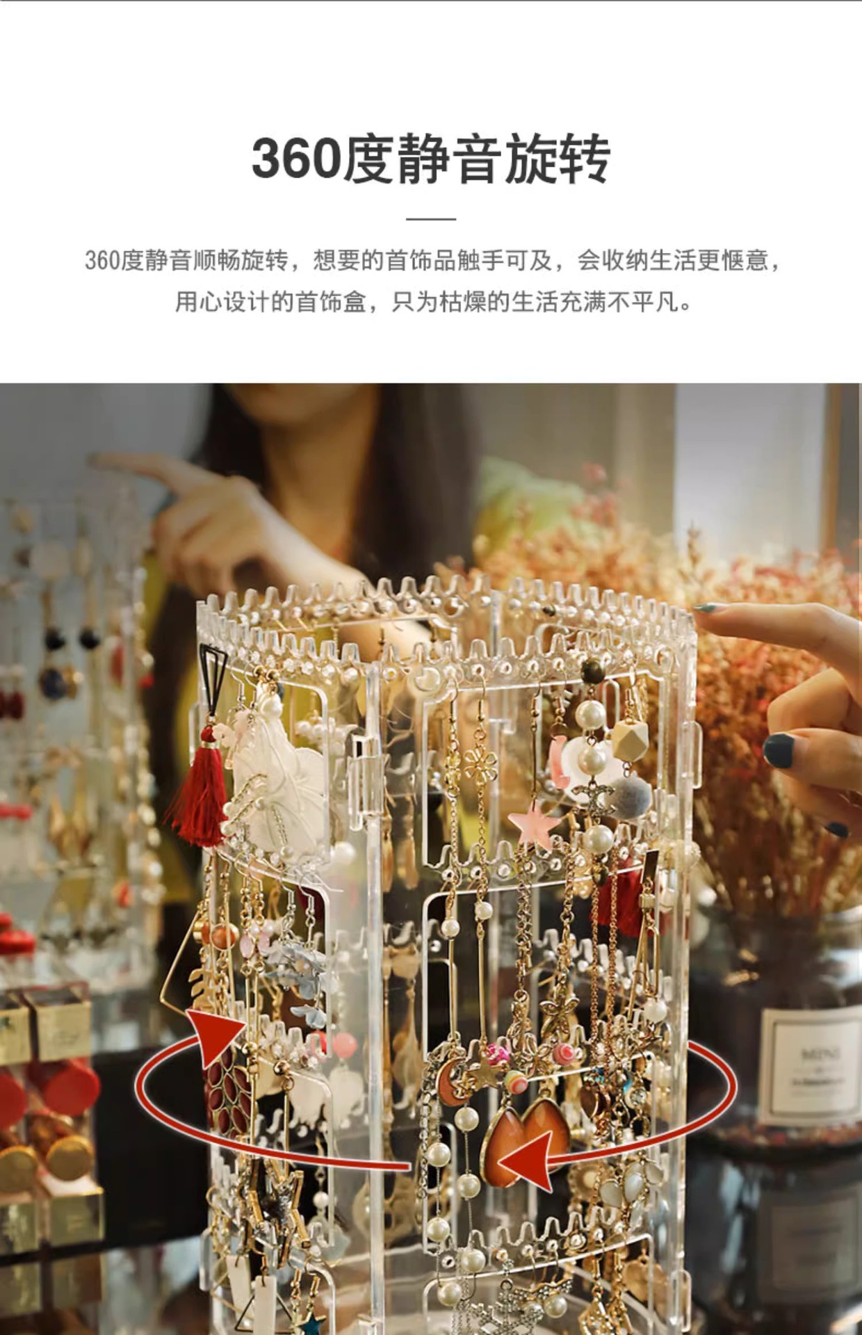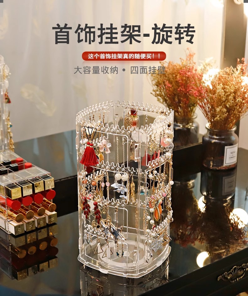 [Cross-border Explosions Support Labeling] Rotating Jewelry Storage Box Display Rack Earrings Earrings Necklace Large Capacity Multi