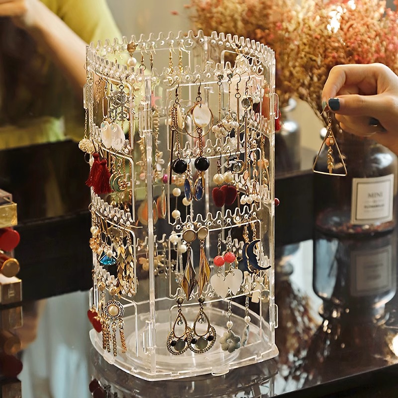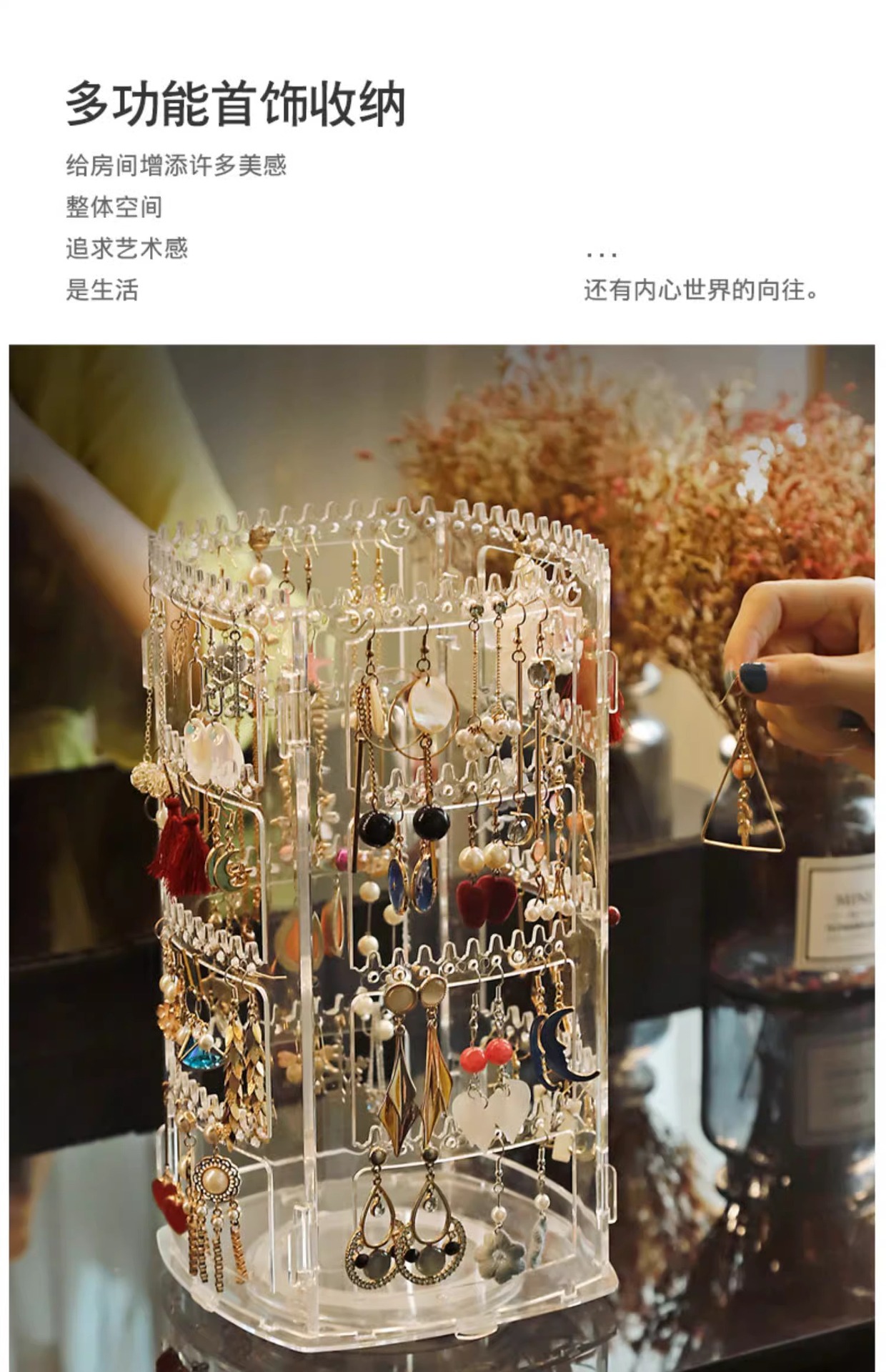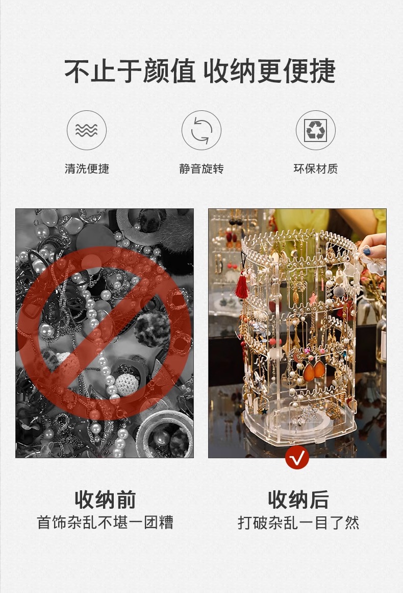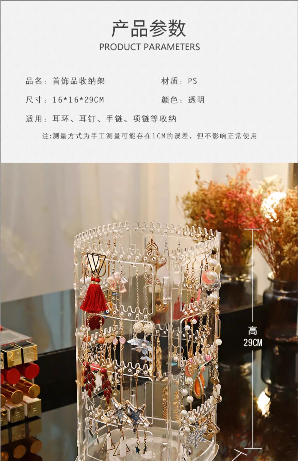 [Cross-border Explosions Support Labeling] Rotating Jewelry Storage Box Display Rack Earrings Earrings Necklace Large Capacity Multi