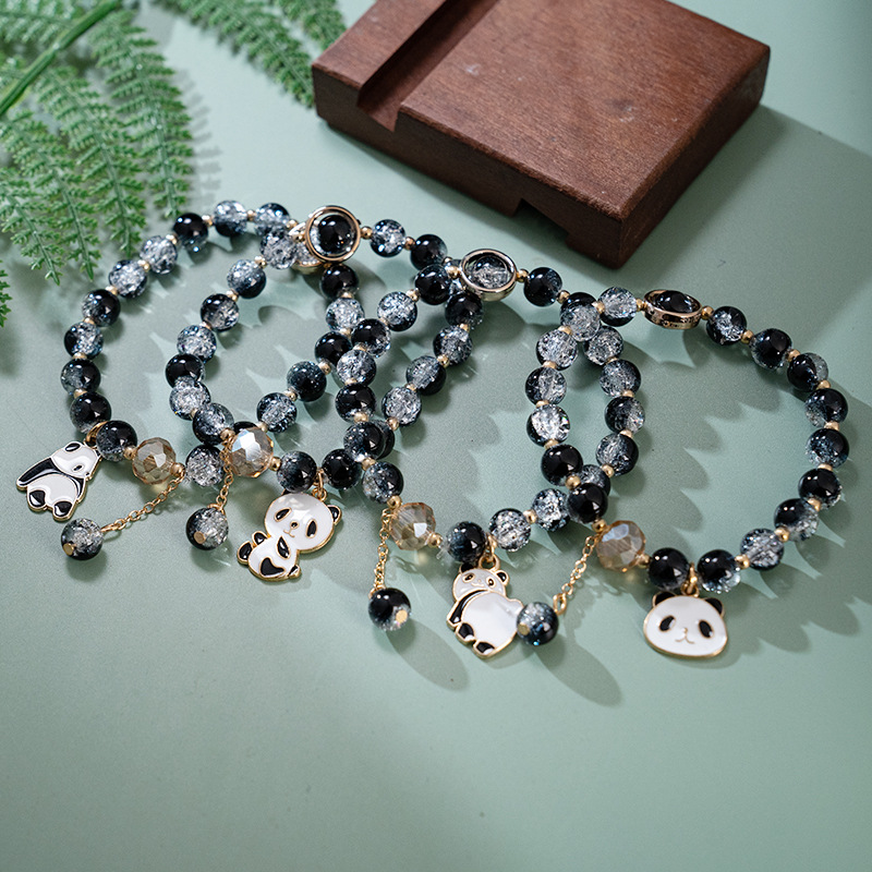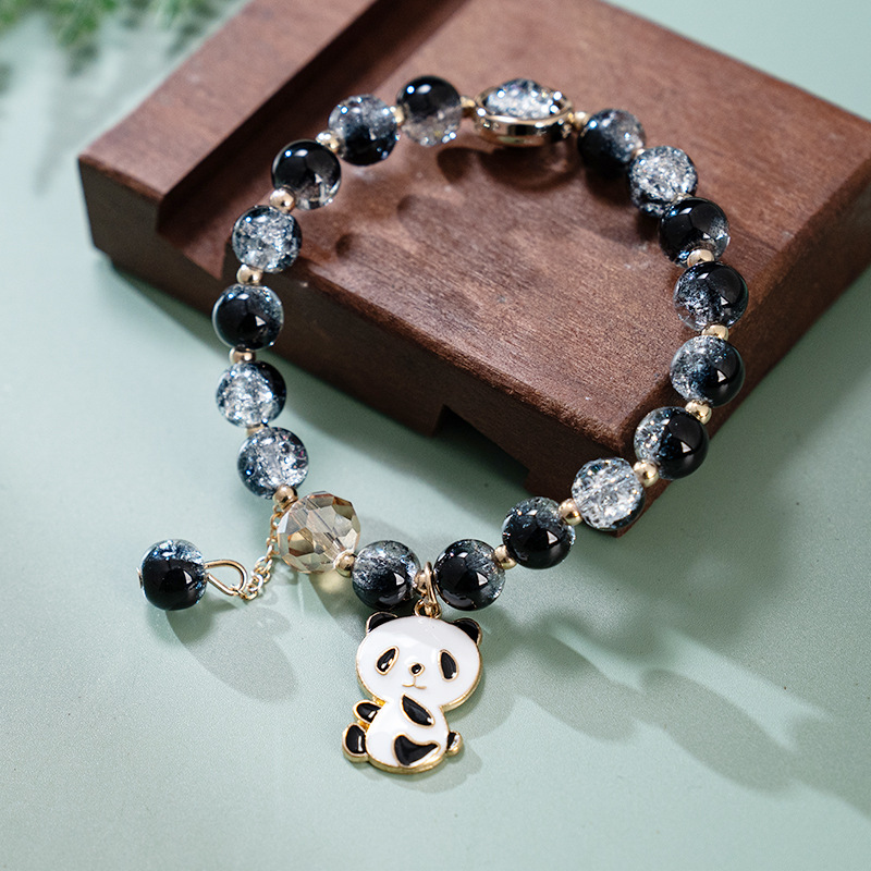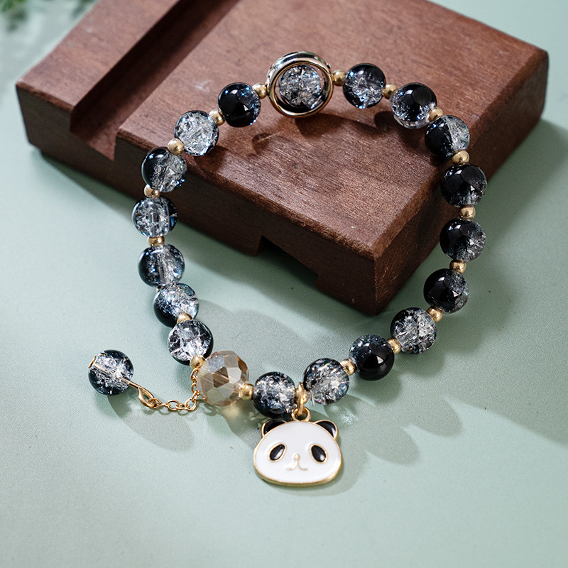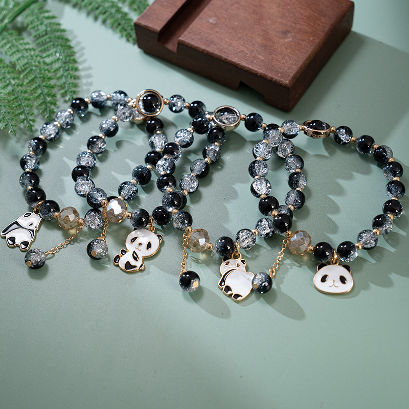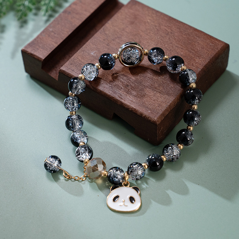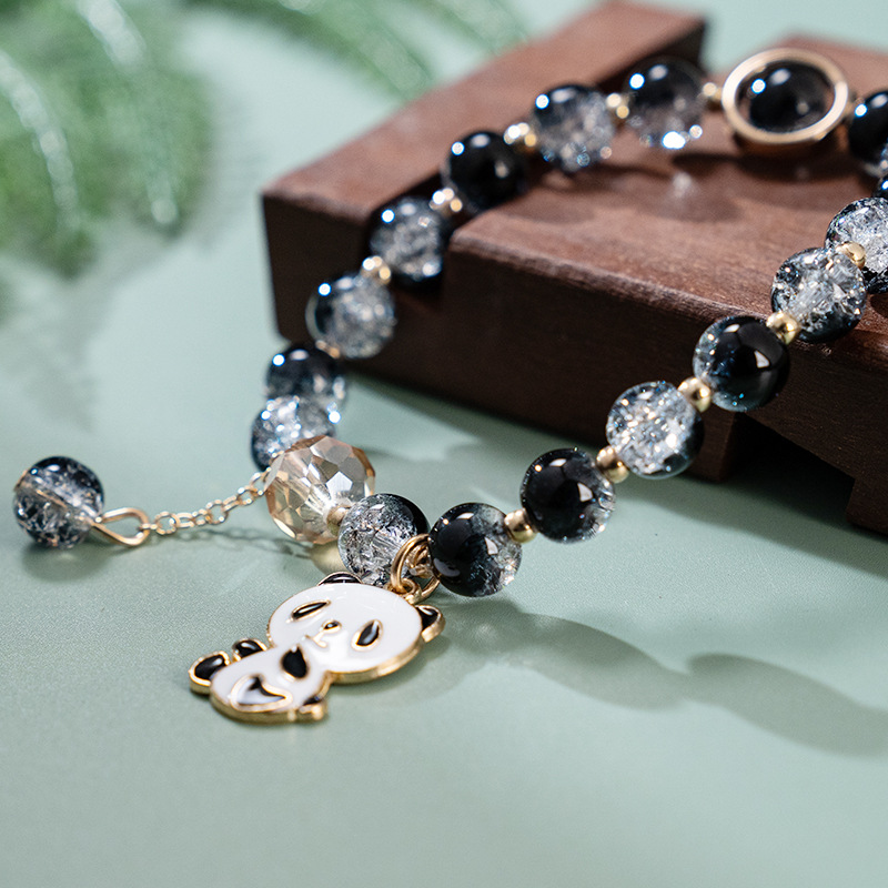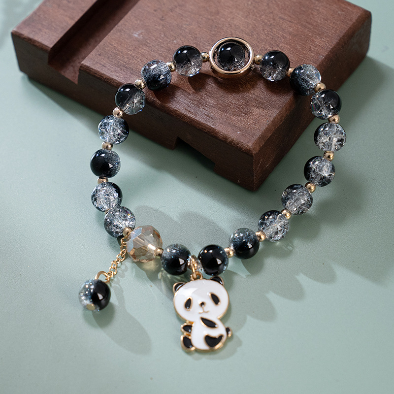 National tide cute pet panda bracelet black and white popcorn crystal cute panda bracelet scenic spot hot abacus live generation