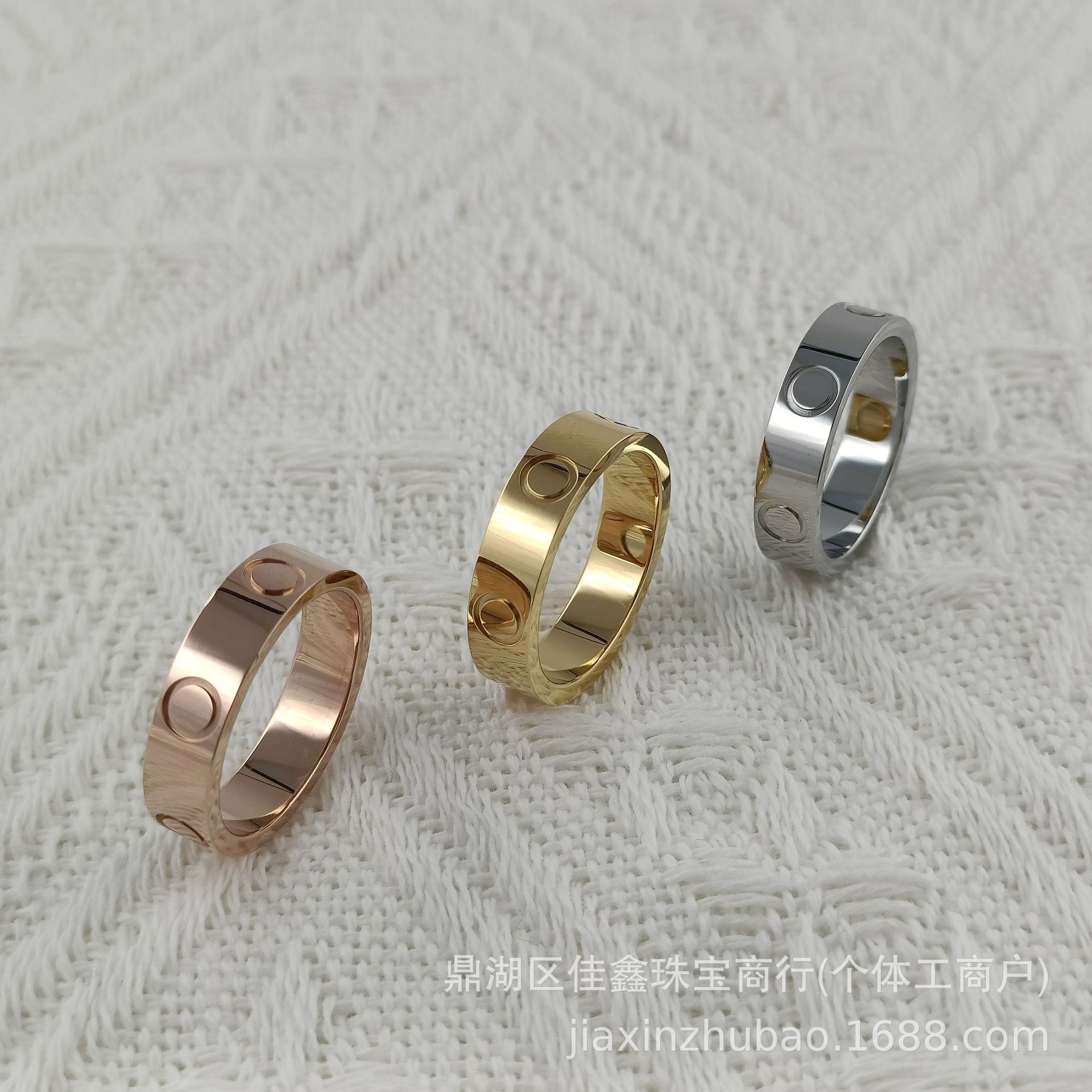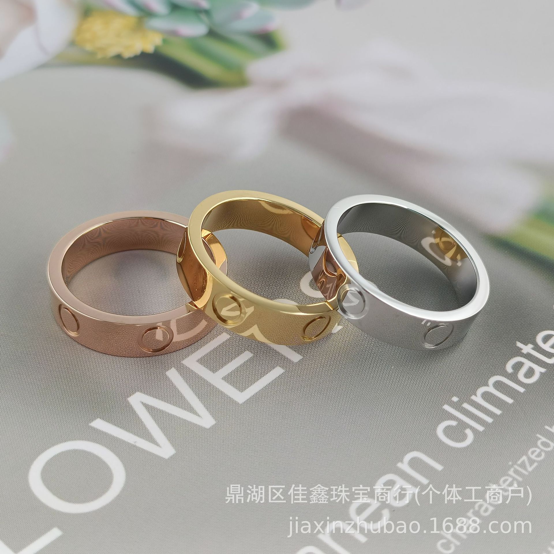 LOVE New High Version Card Home Ring Classic Titanium Steel Ring Crescent Groove Six Nail Couple Wedding Ring Factory Outlet
