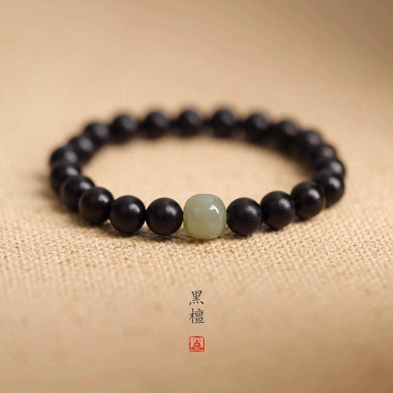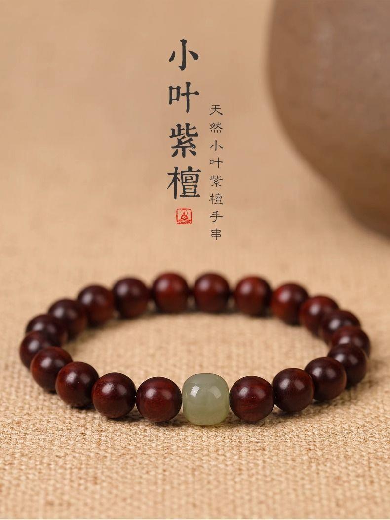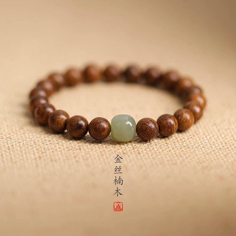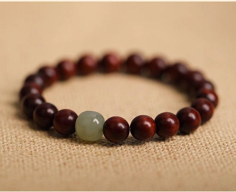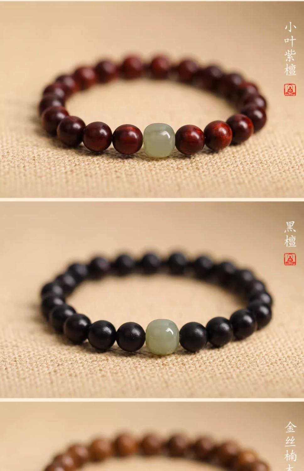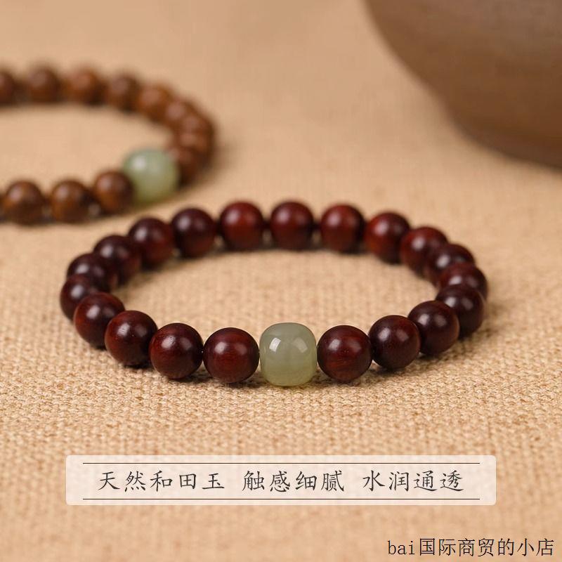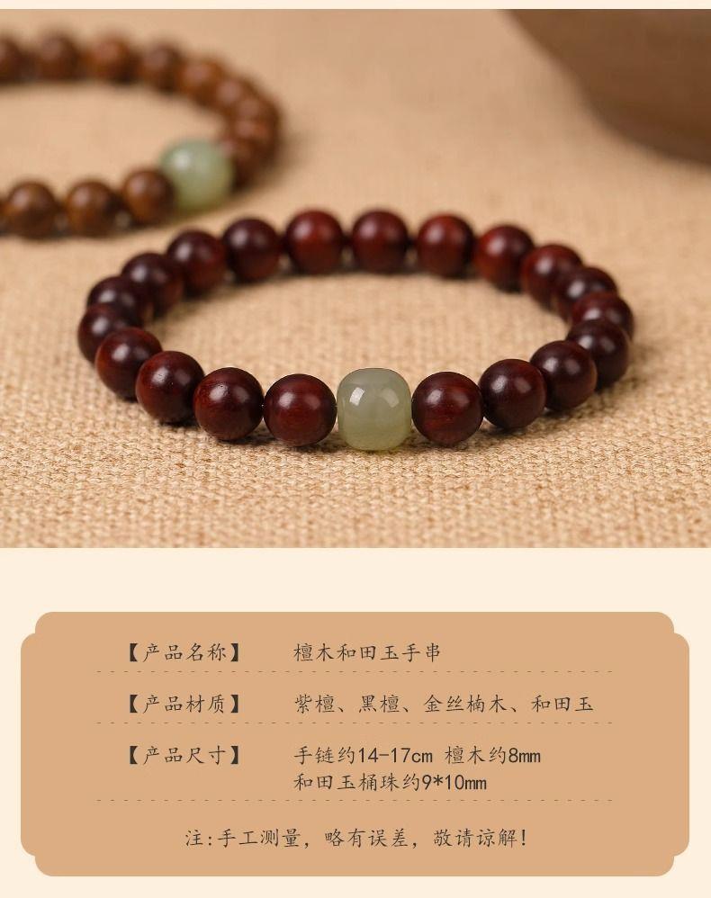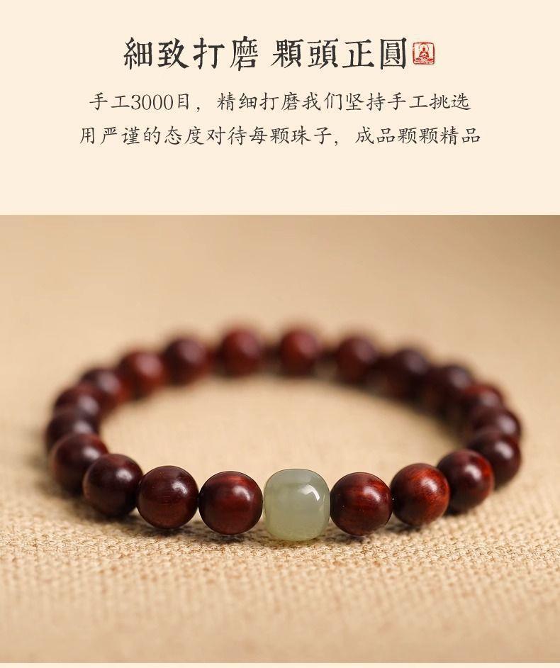 Natural Red Sandalwood Bracelet for Men and Women Couple Ebony Wooden Buddha Beads Golden Silk Sandalwood Bracelet Hetian Jade Top Beads