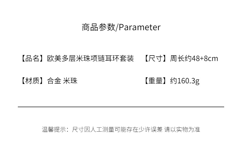 Item No.: (C281) European and American multi-layer beads necklace earrings set