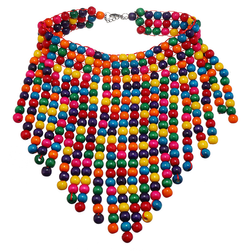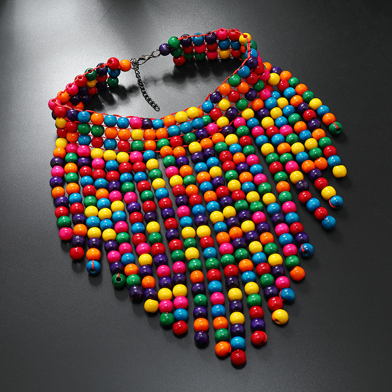 Item number: (c153) european and american exaggerated wooden bead tassel necklace