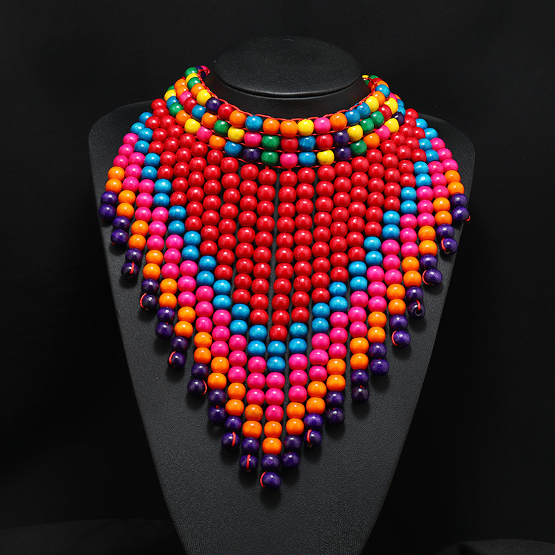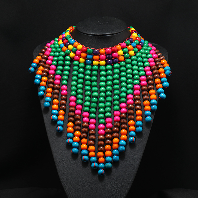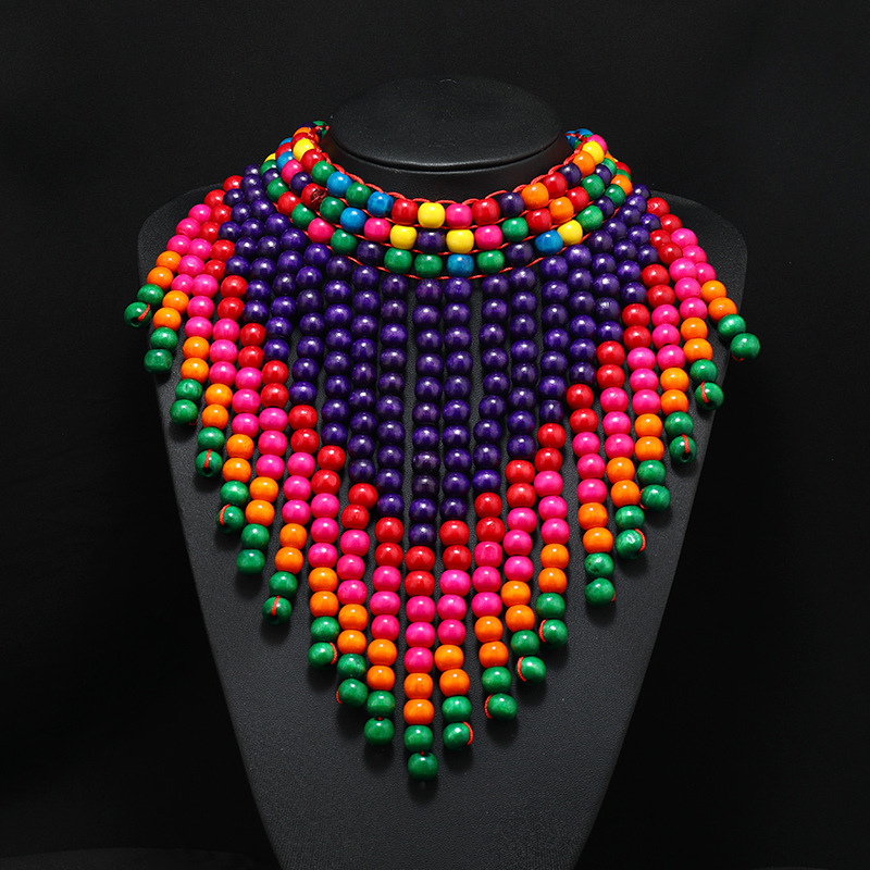 European and American Handmade Distinctive Exaggerated Wooden Bead Necklace Bohemian Ethnic Wind Music Festival Stage Show Vintage Accessories