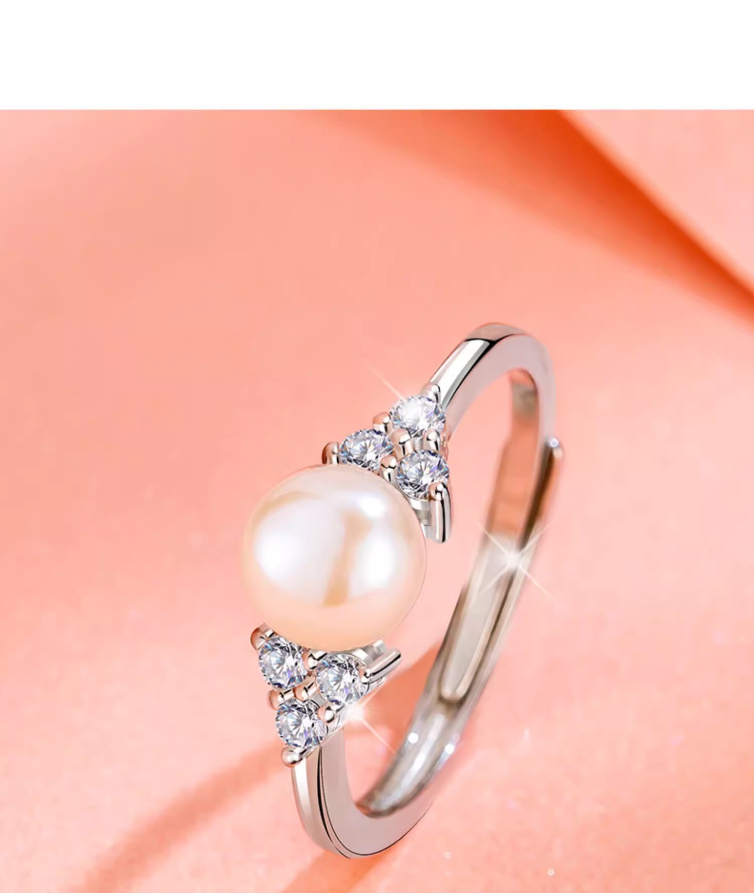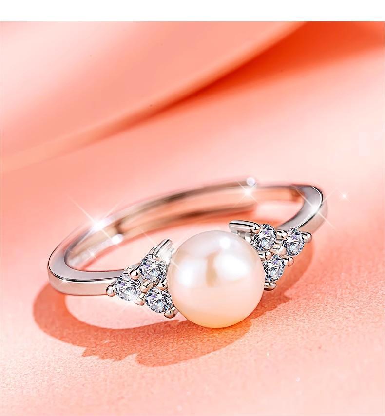 Korean Style Light Luxury Diamond Pearl Ring Simple Fashion Niche Design Holiday Girlfriend High-end Open Ring