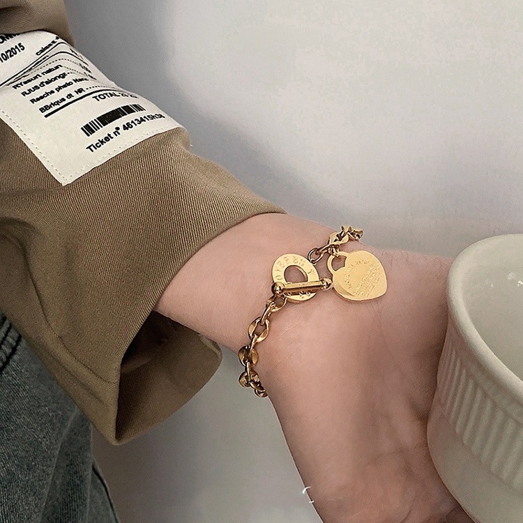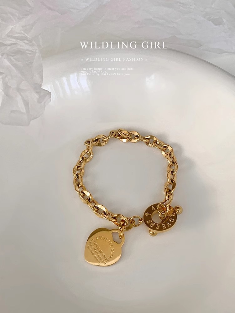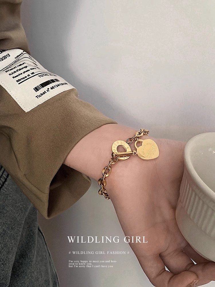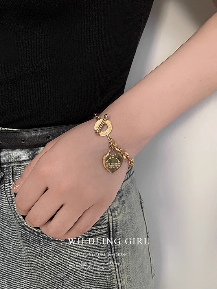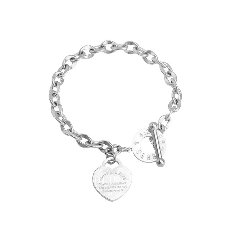 Europe and the United States cross-border hot supply love stainless steel jewelry personality all-match hand ornaments OT buckle popular titanium steel bracelet