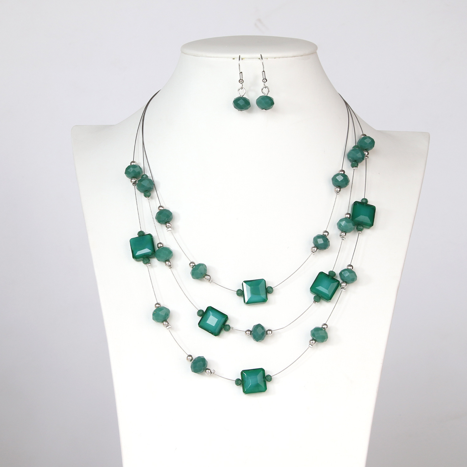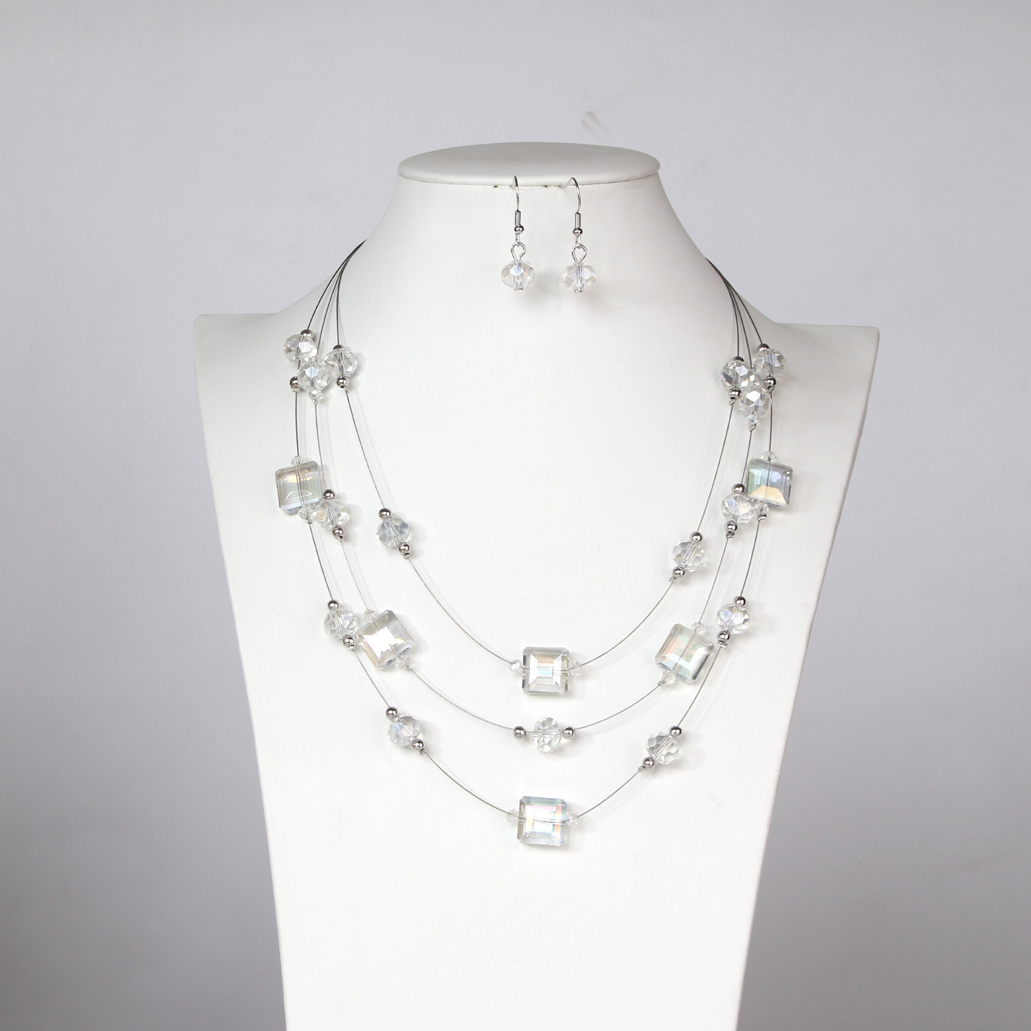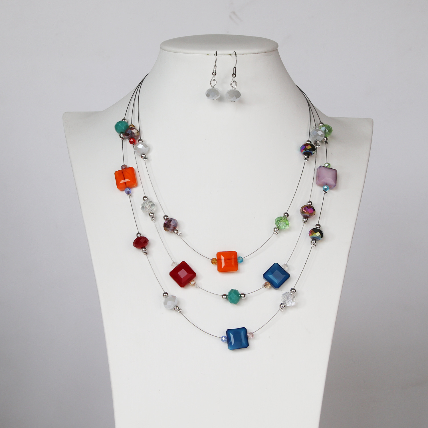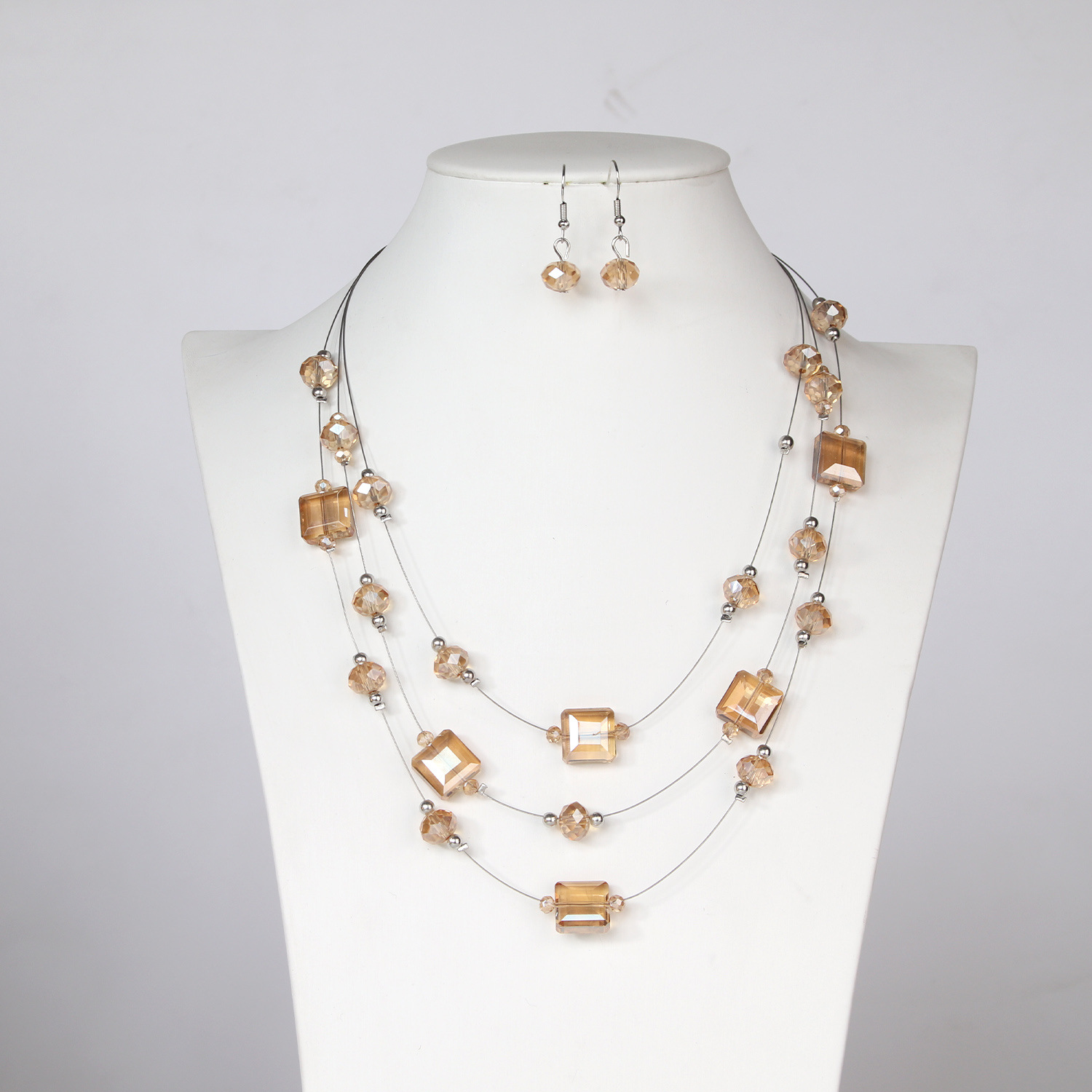 AliExpress Wish Explosions Bohemian Beach Crystal Ethnic Style Multi-Layer Necklace Earrings Set Amazon