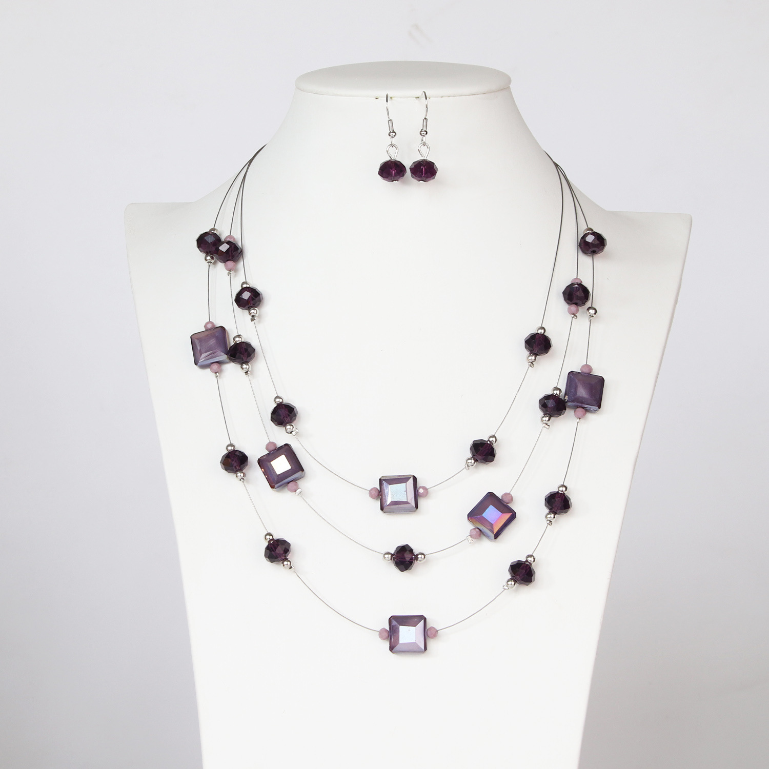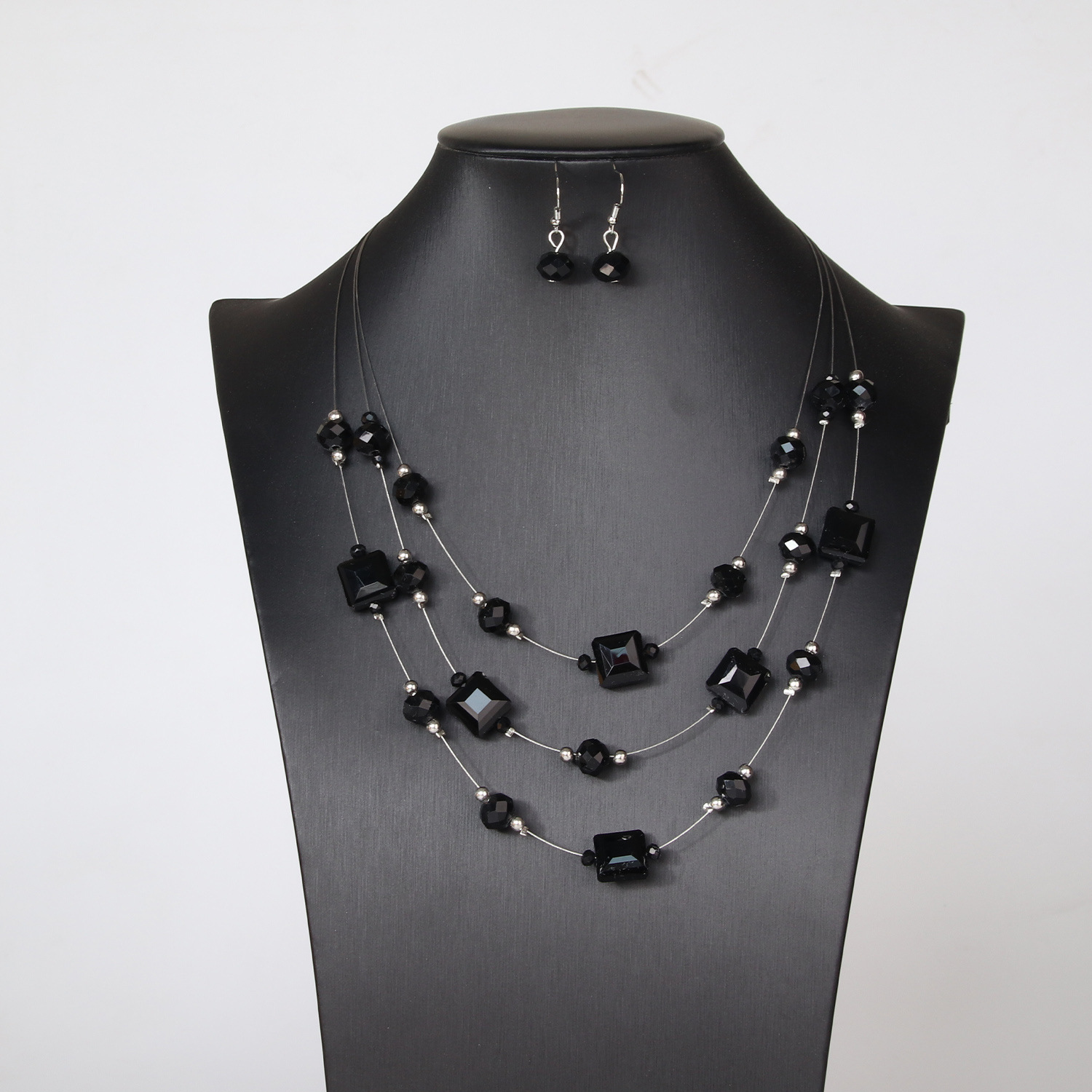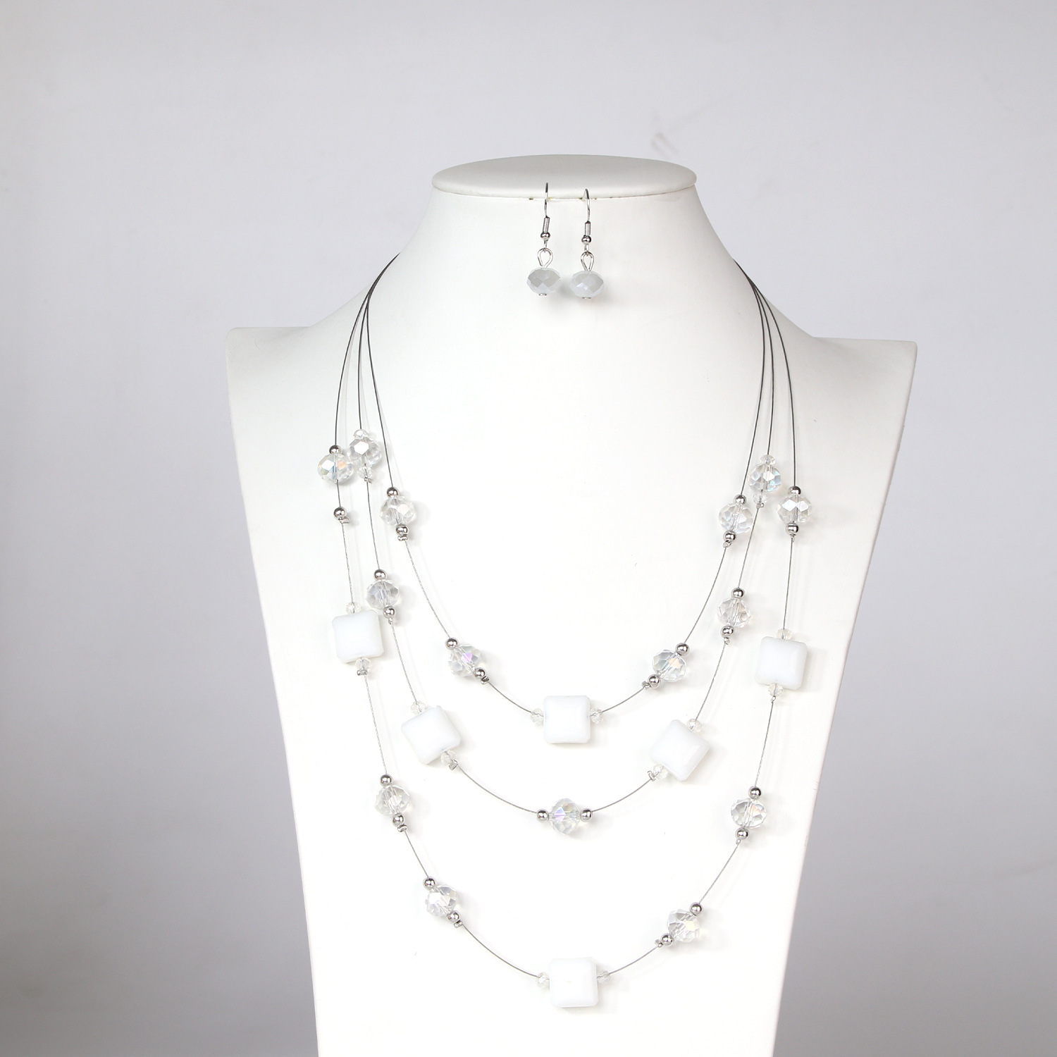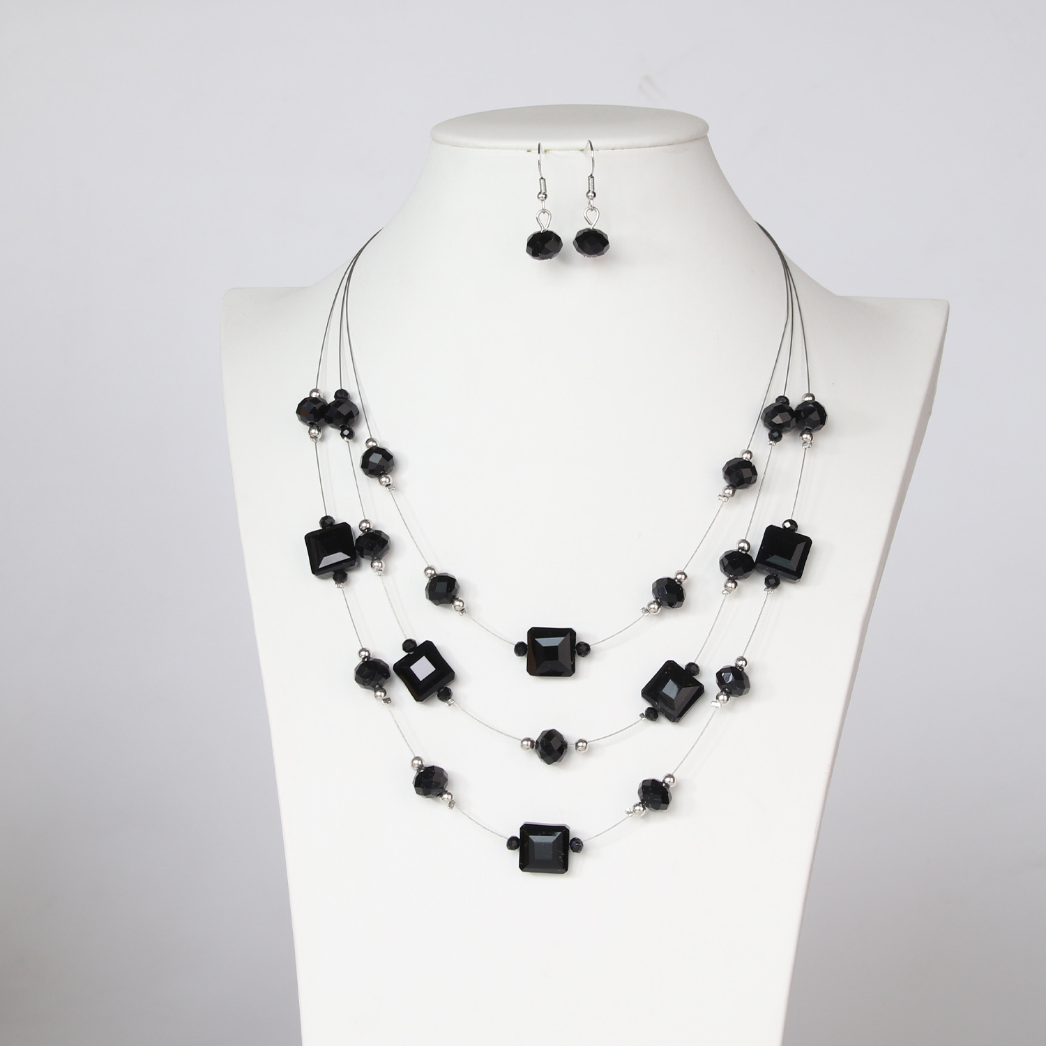 AliExpress Wish Explosions Bohemian Beach Crystal Ethnic Style Multi-Layer Necklace Earrings Set Amazon