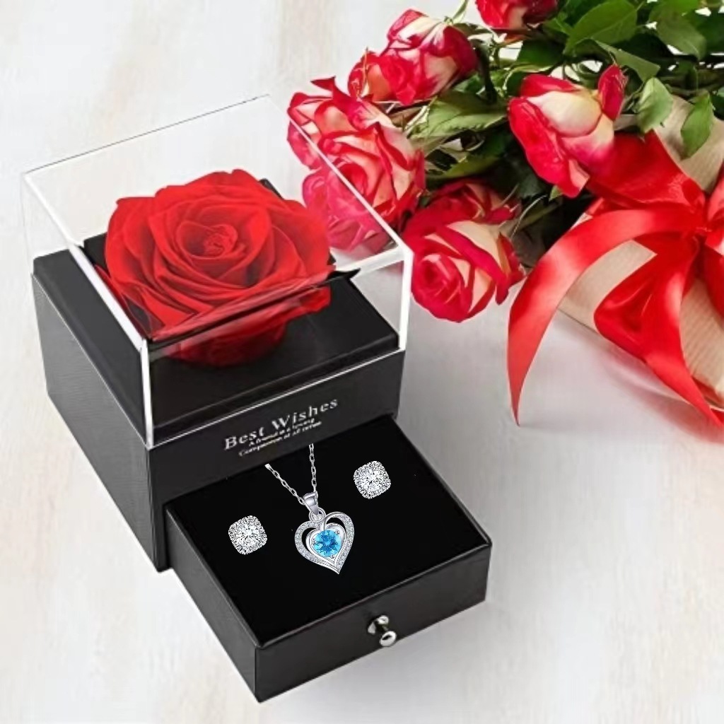 Color: Blue Necklace 1 Rose Gift Box