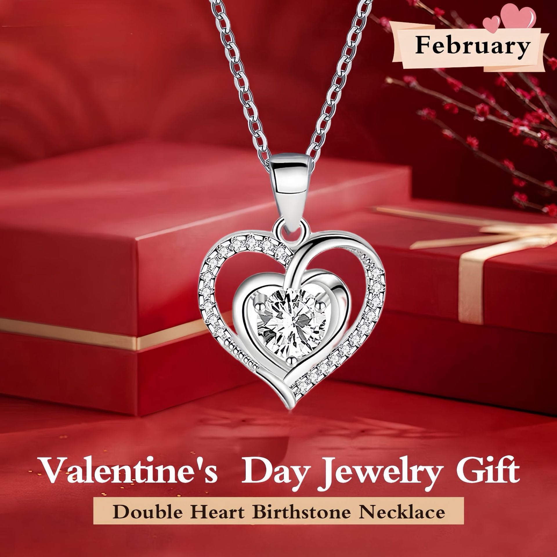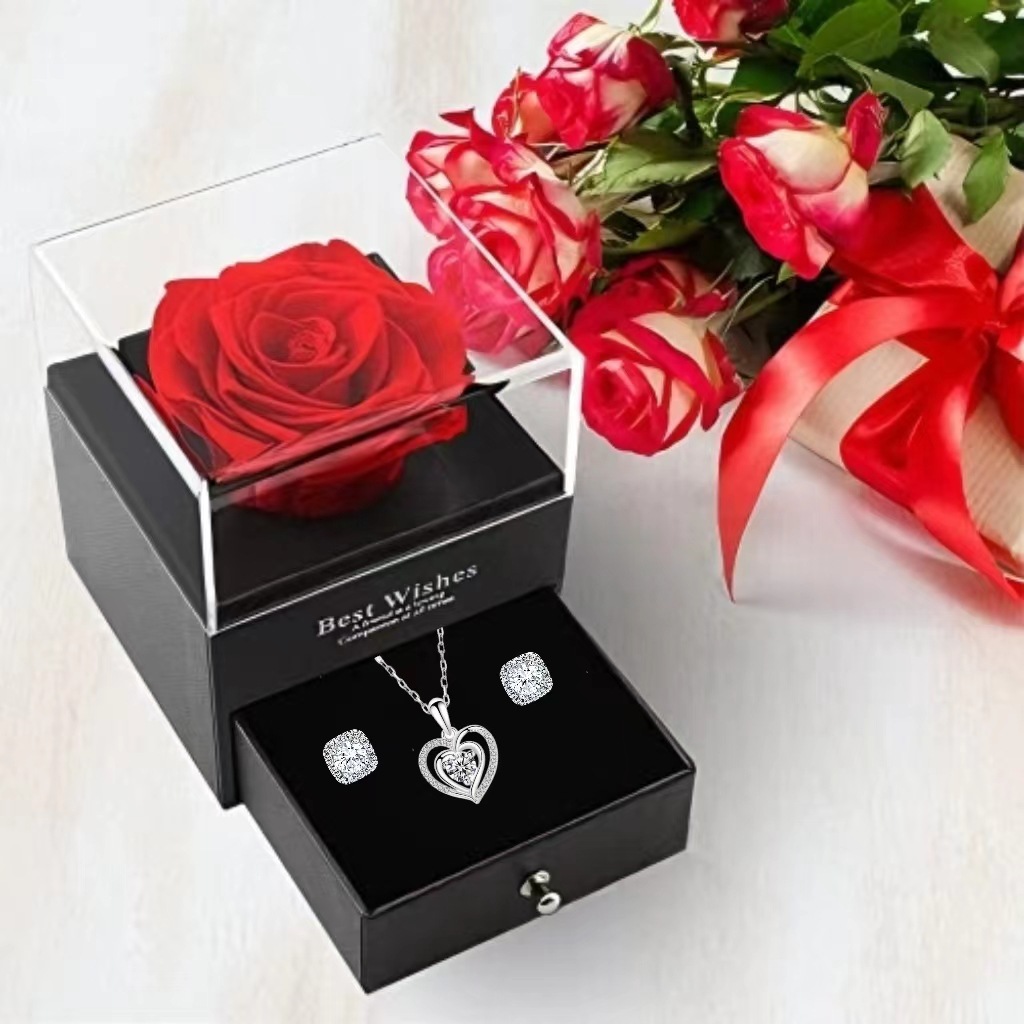 Color: White necklace square earring 1 rose gift box