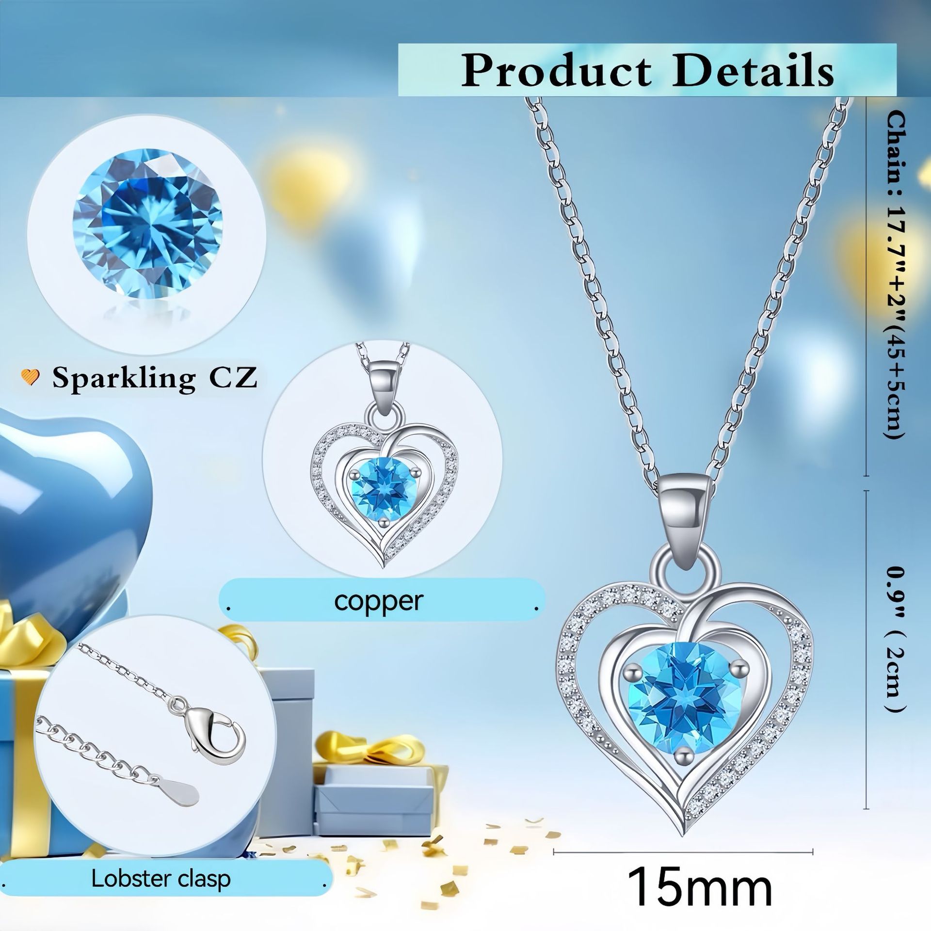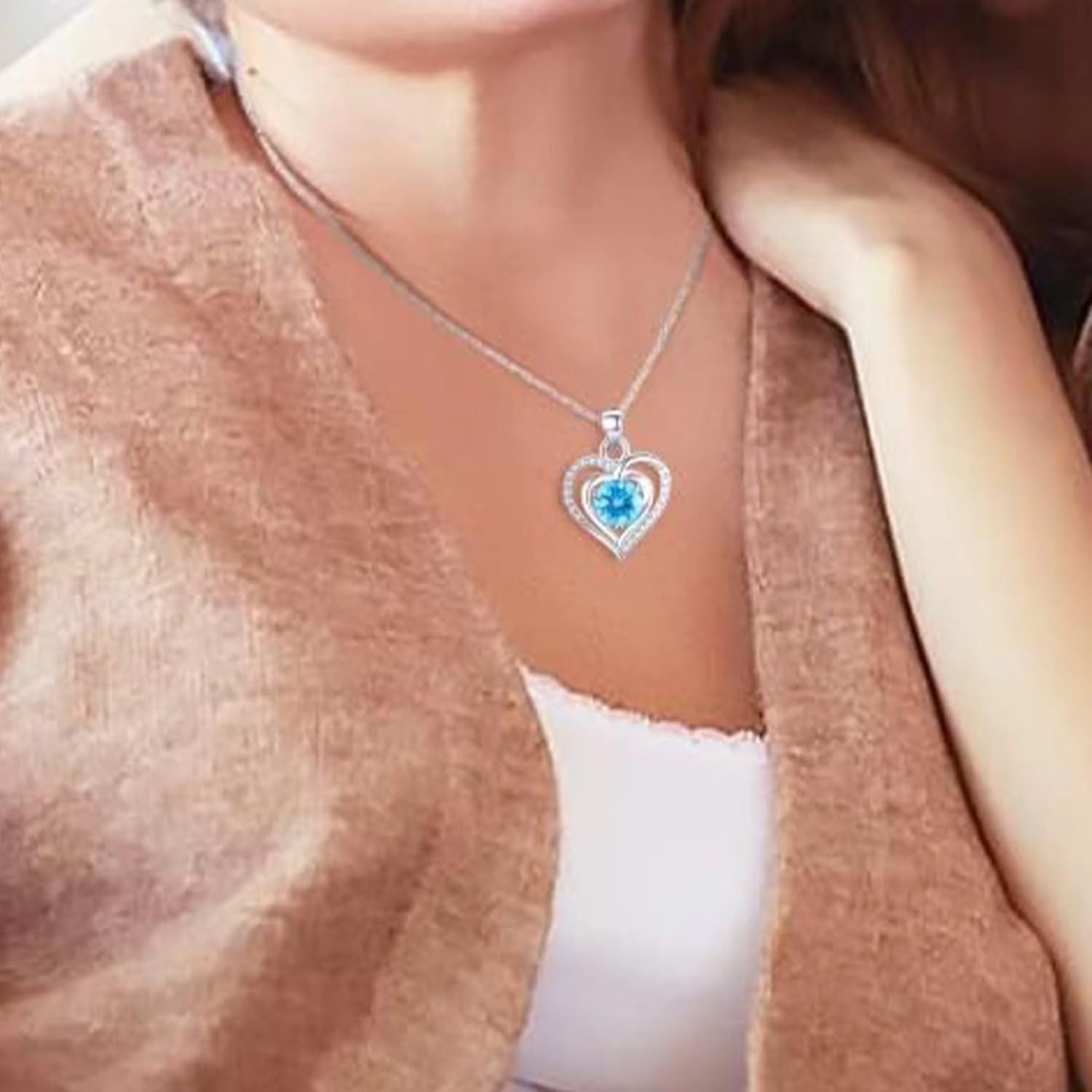 Cross-border Amazon Hot Selling High-level Heart of the Ocean Smart Love Clavicle Chain Heart Pendant Necklace Women
