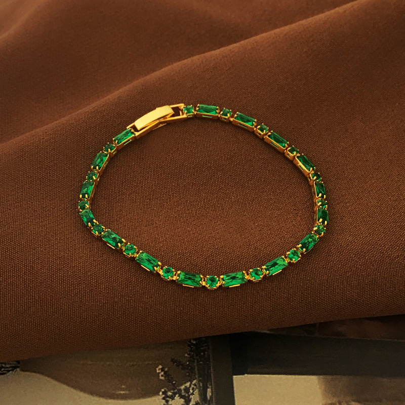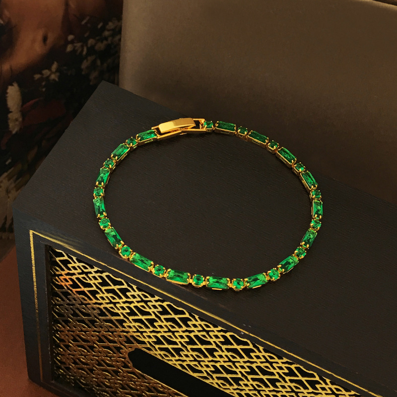 Copper plated real gold French retro green zircon hand necklace niche fashion high sense necklace temperament jewelry 2397