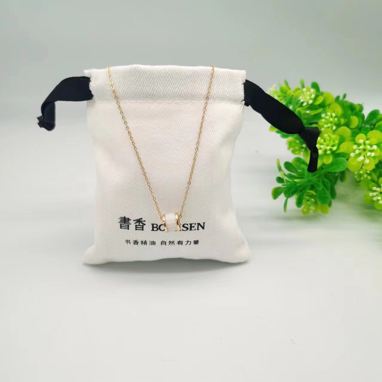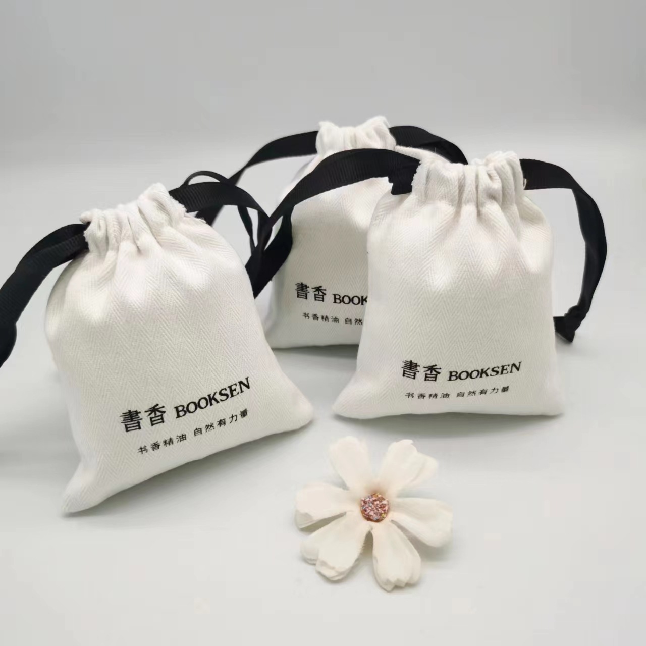 Fashionable and Simple Pure Cotton Canvas Bag Ring Earrings Trinket Storage Dust Bag Can Be Placed with Free Samples and Printable Logo