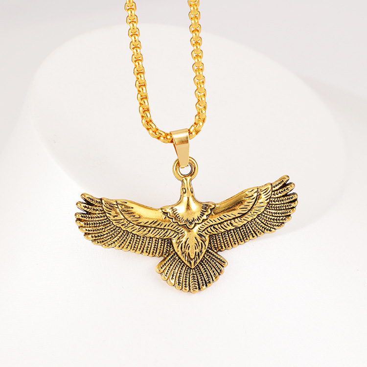 European and American Fashion Golden Eagle Pendant Necklace Men's Hip-Hop Retro Personalized Long Woolen Chain Clothing Pendant Gift