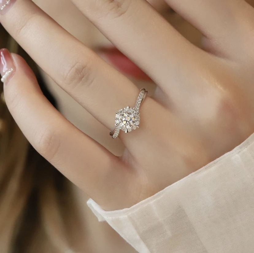 Little Red Book Douyin Six-Claw Diamond Ring Micro-Paved Arm Band Exquisite Simulated Engagement Ring for Women Rose Simulated Diamond Ring