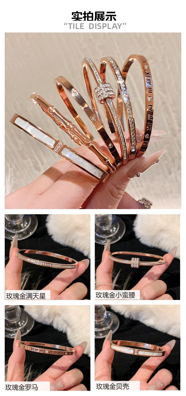 Color: 【9】rose gold-ten diamond bracelet (4mm)