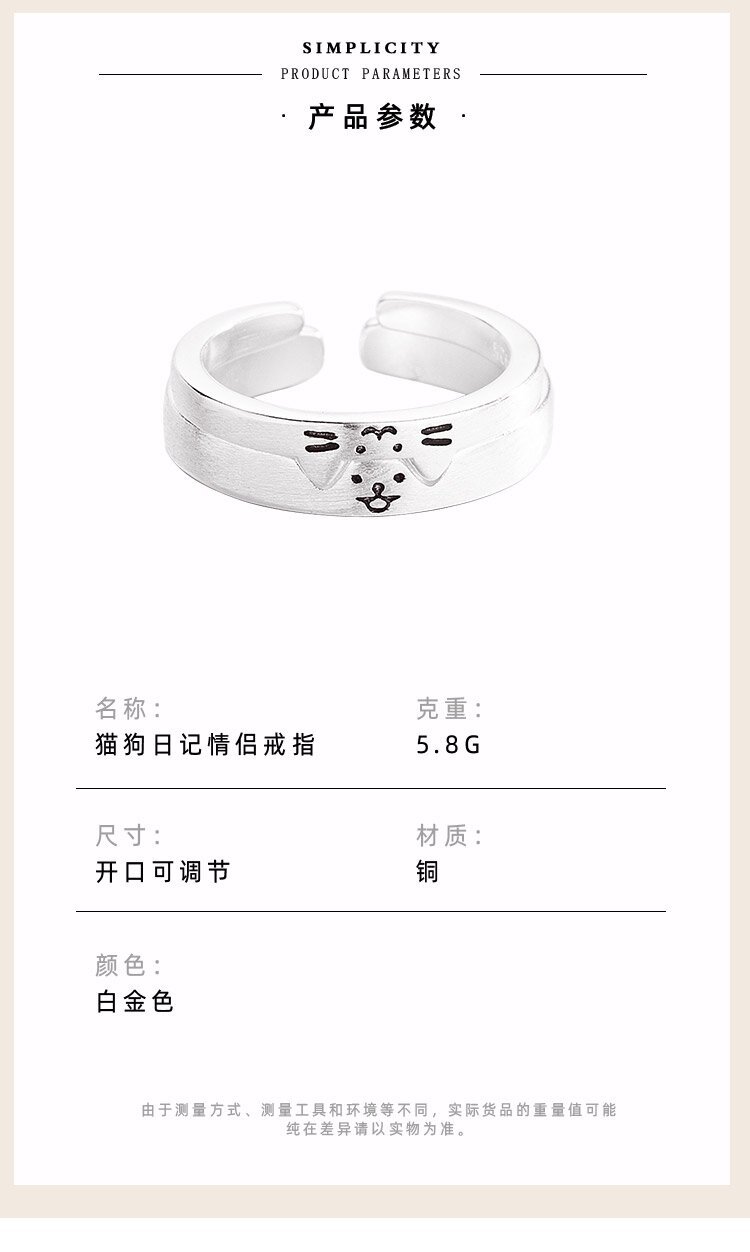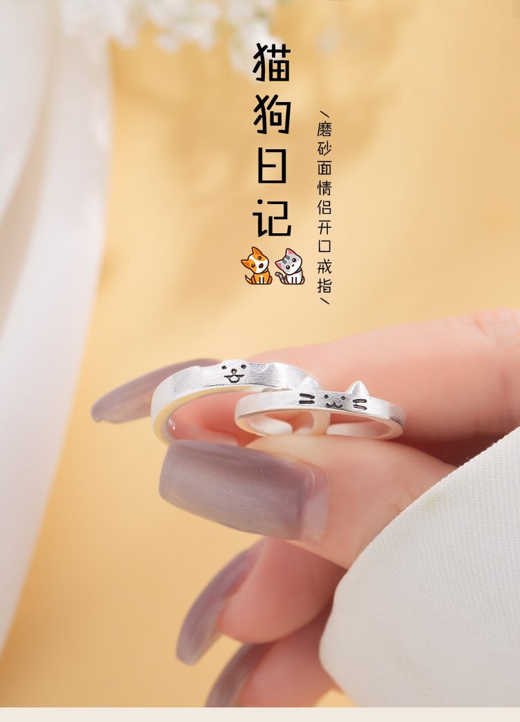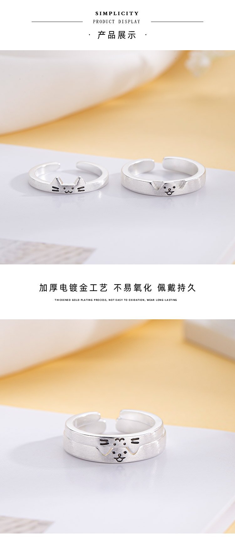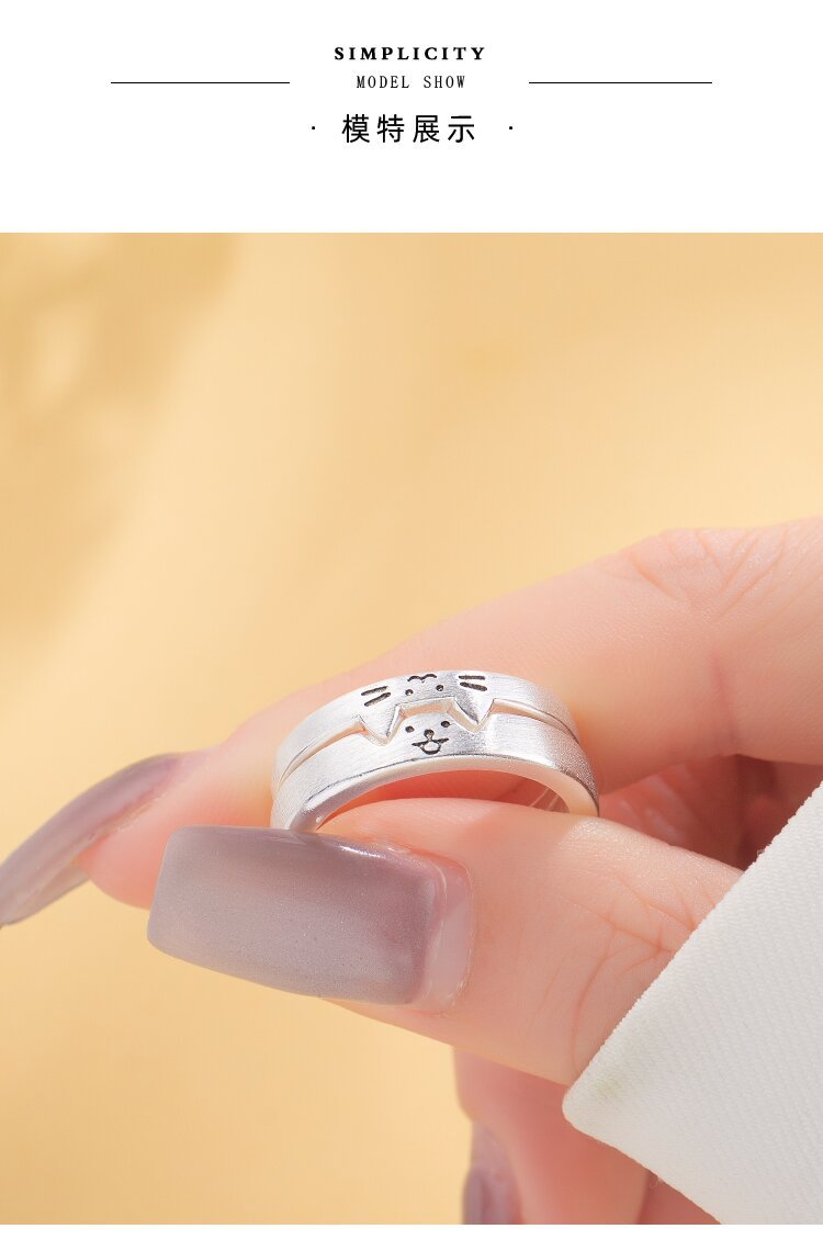 Chenxi Little Red Riding Book Same Style Kitten and Puppy Couple Pair Ring Personality ins Overlay Combination Cute for Girlfriend