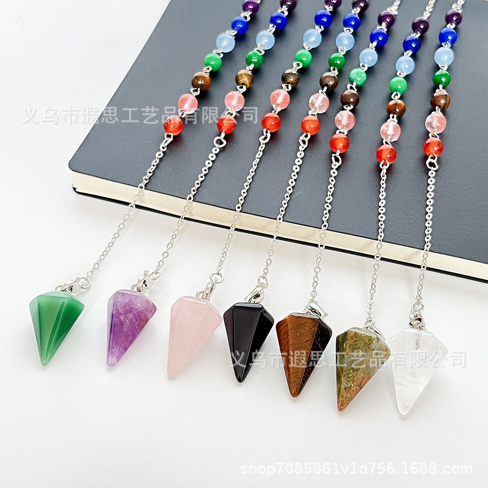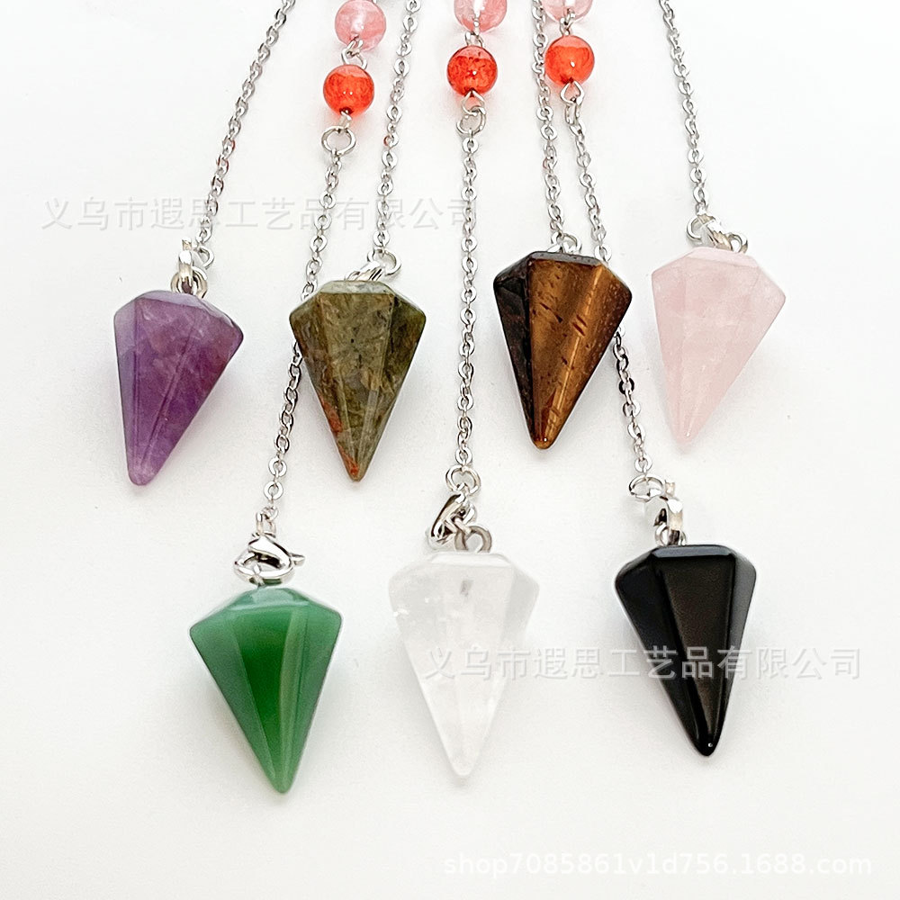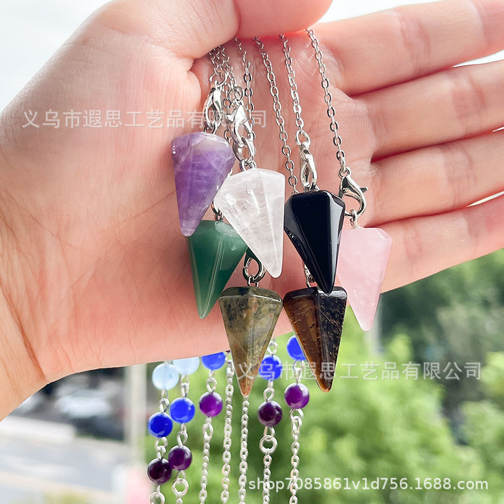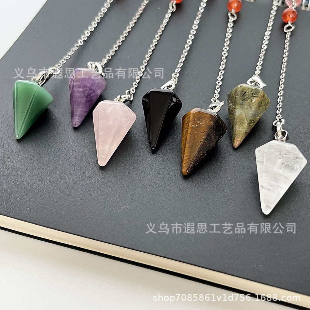 Natural Crystal Amethyst White Crystal Geometric Polyhedron Pendulum Pendant Removable Hexagonal Column Cone Yoga Meditation