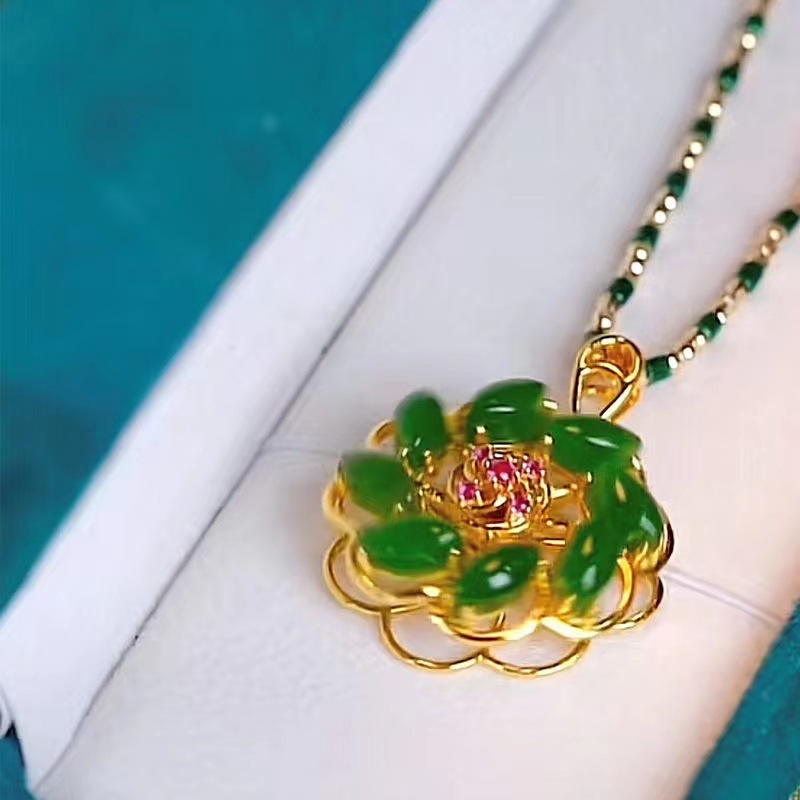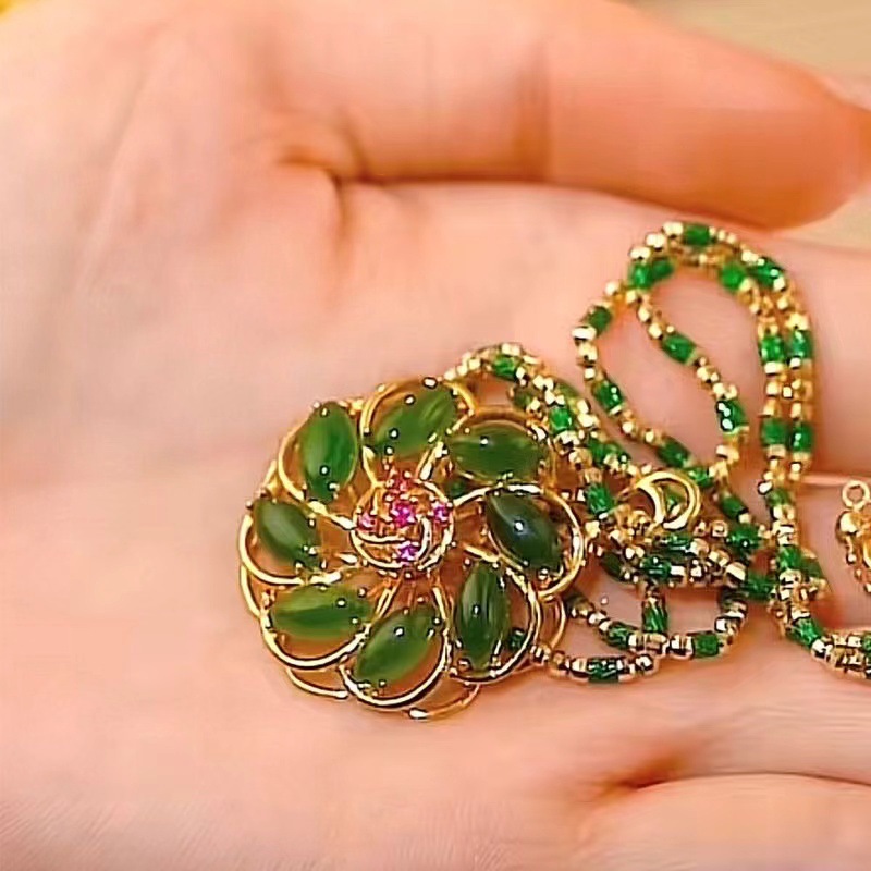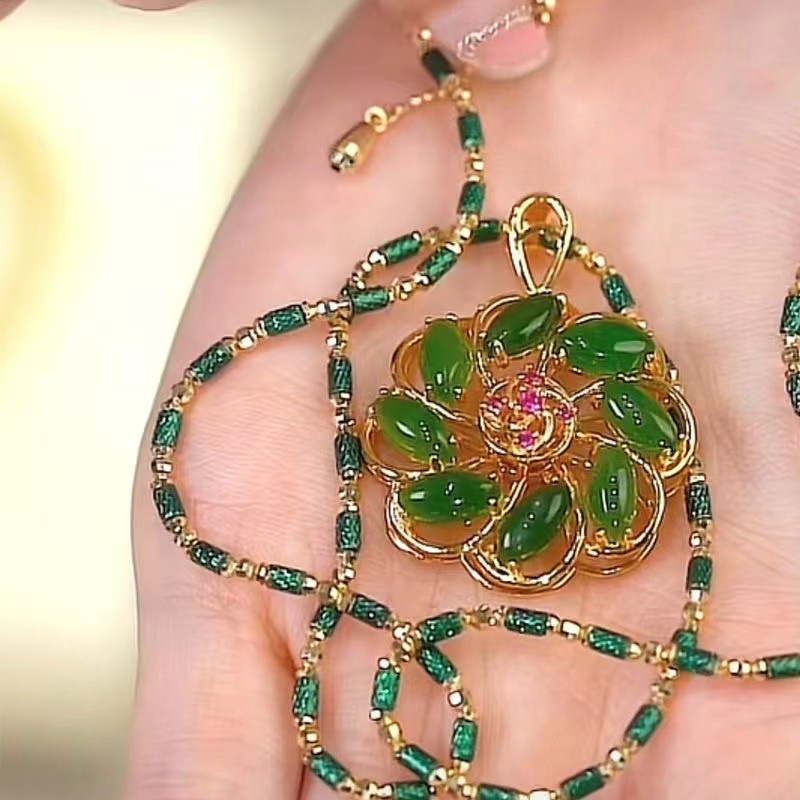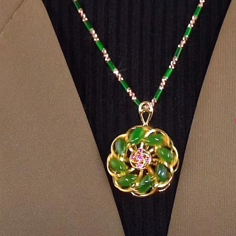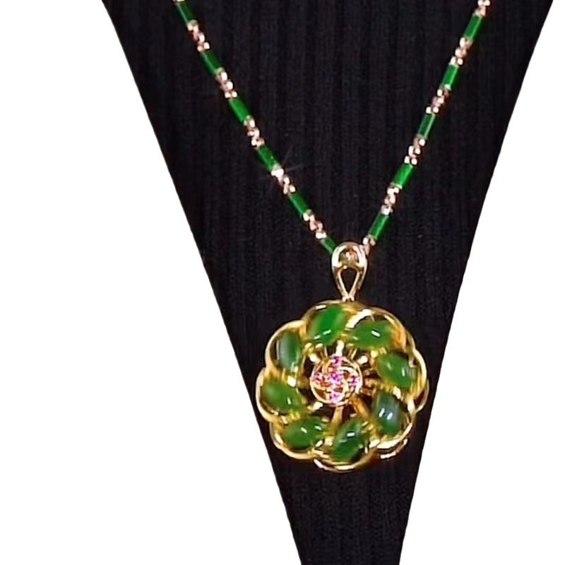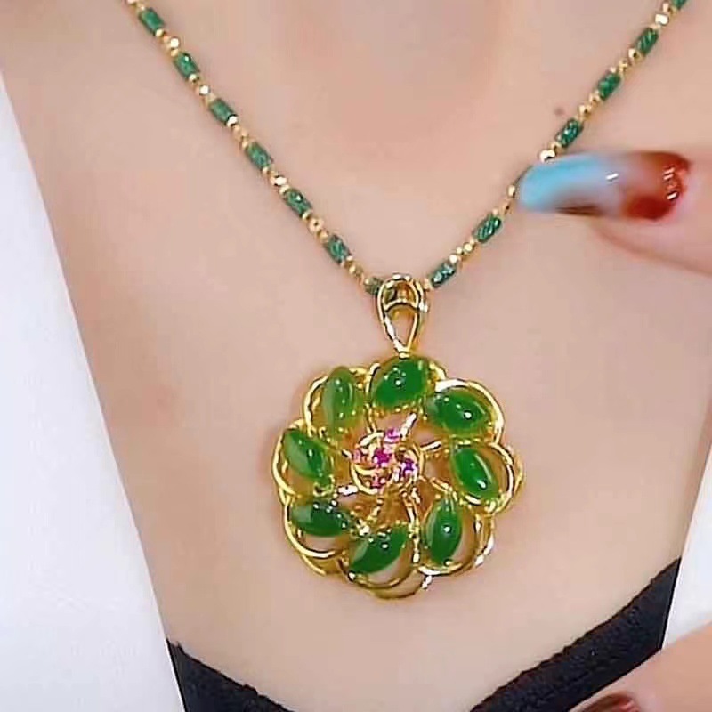 2024 New Lucky Flower Pendant Women's Necklace Apple Green Inlaid Titanium Steel High-end Fashion Luxury Design Ornaments