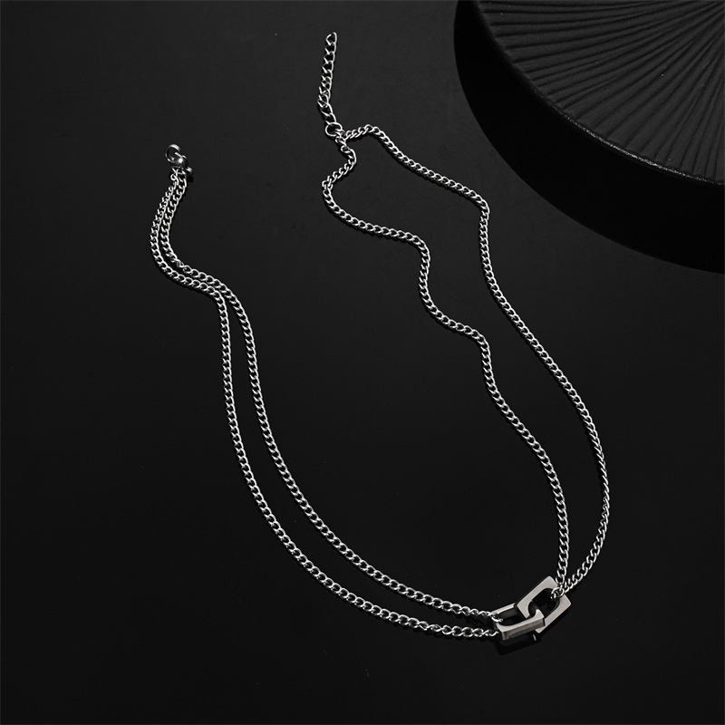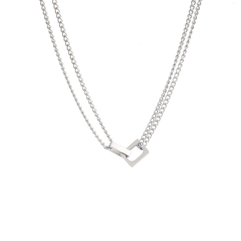 Color: Xl280--double layer square buckle necklace 45+ 5cm