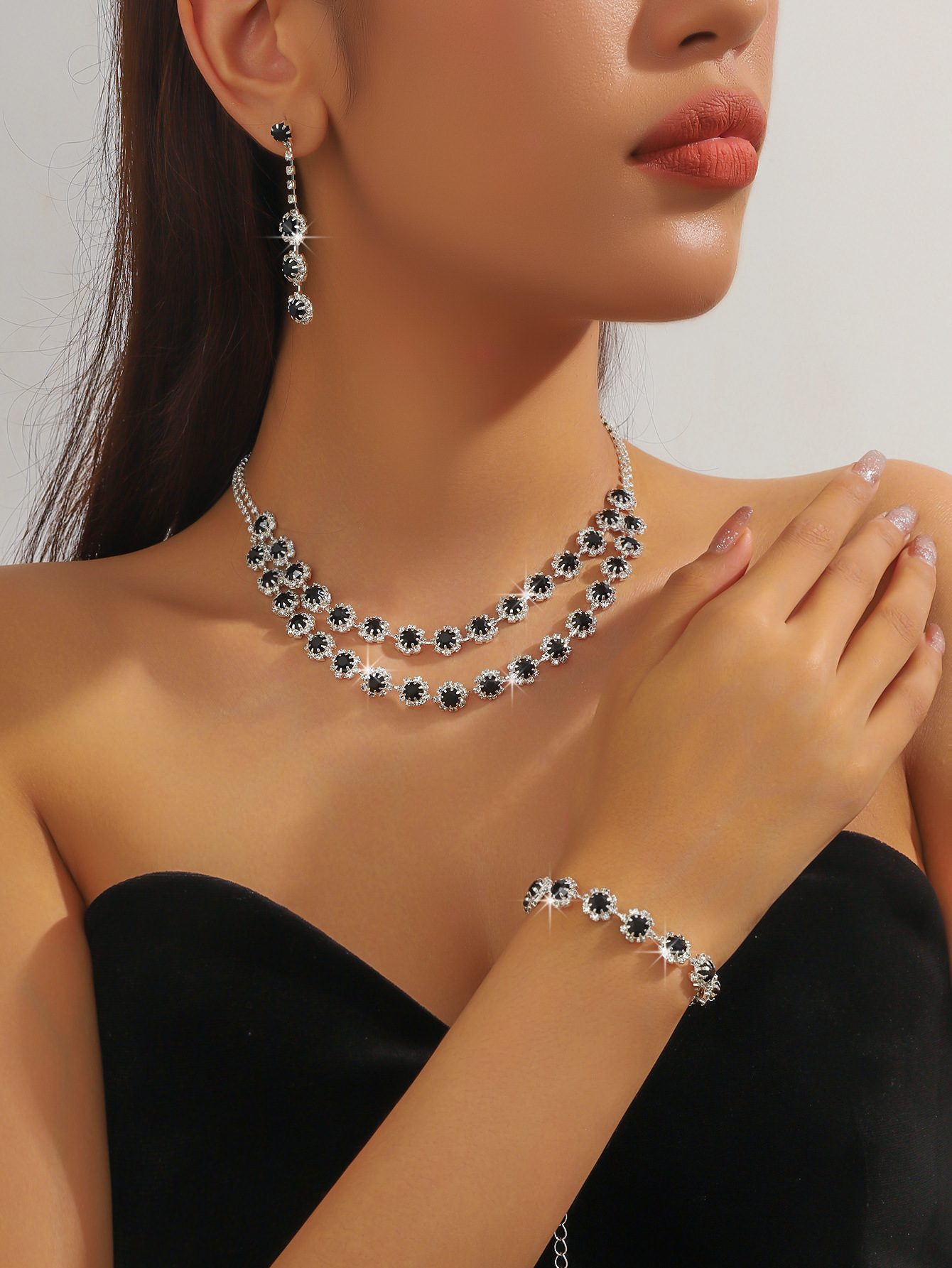 Color: T-0032-2 black snowflake necklace set